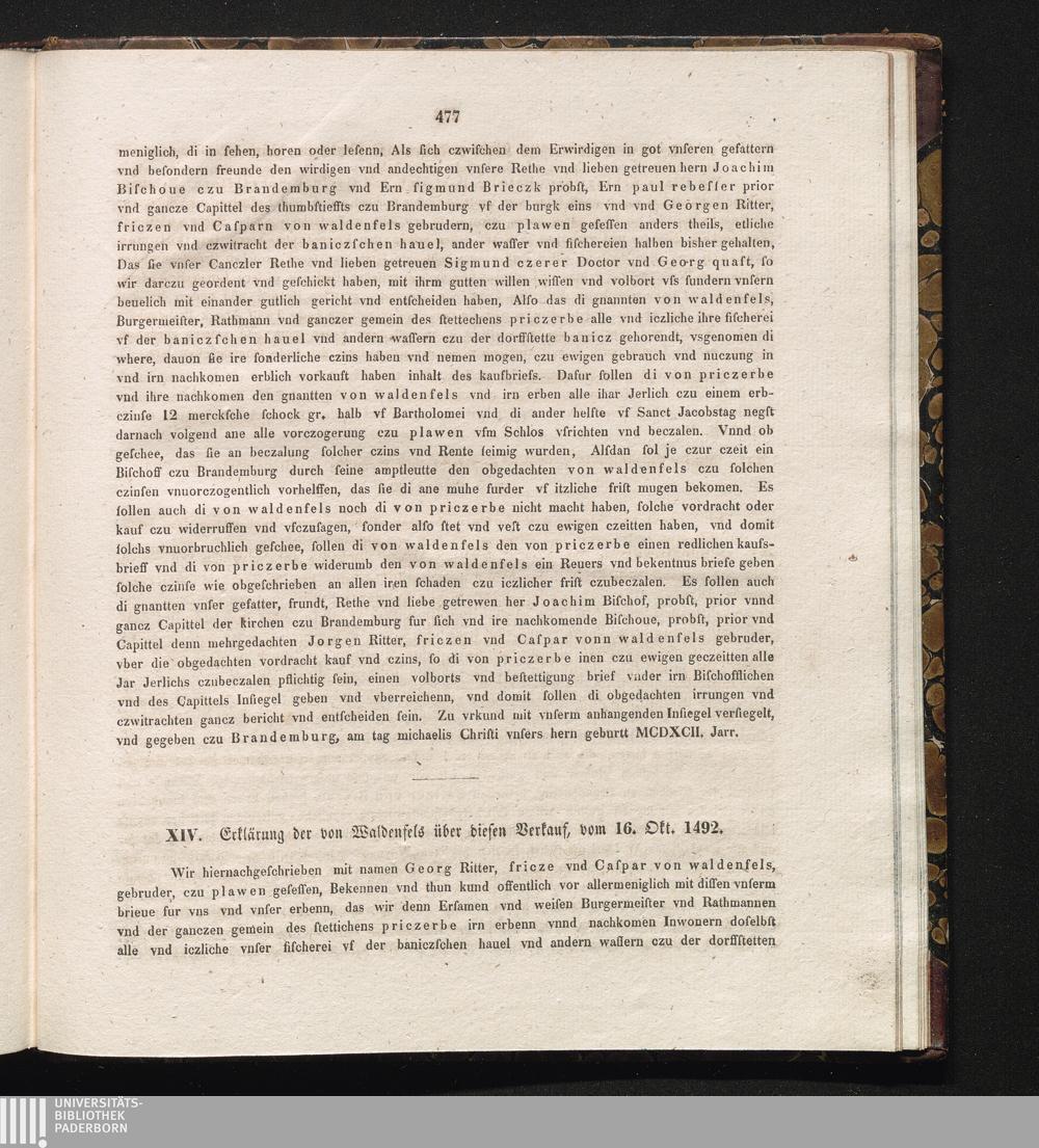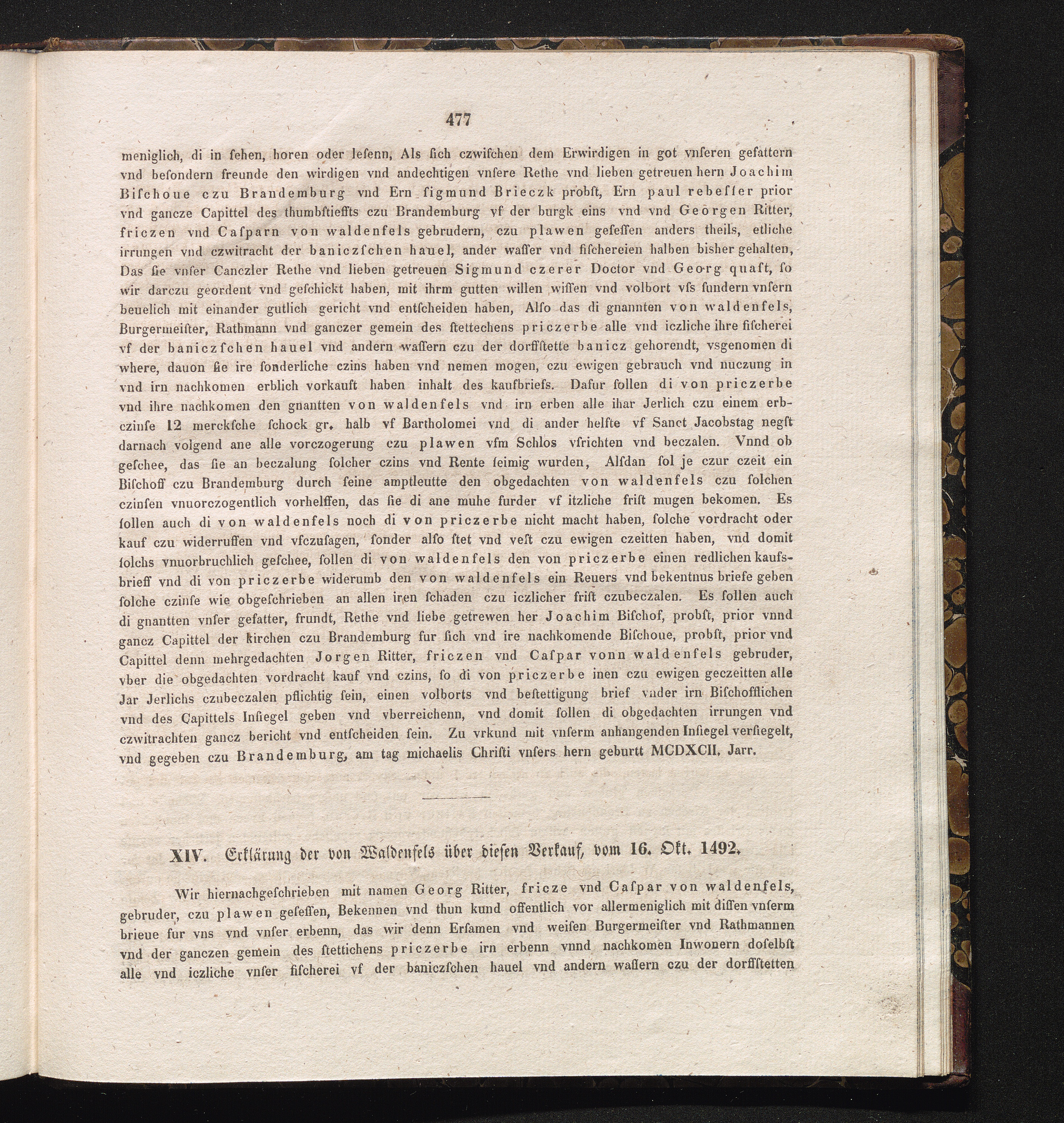 XIV. Erklärung der von Waldenfels über diesen Verkauf, vom 16. Okt. 1492.