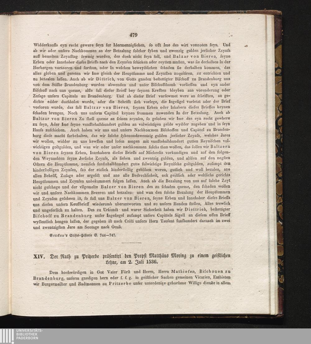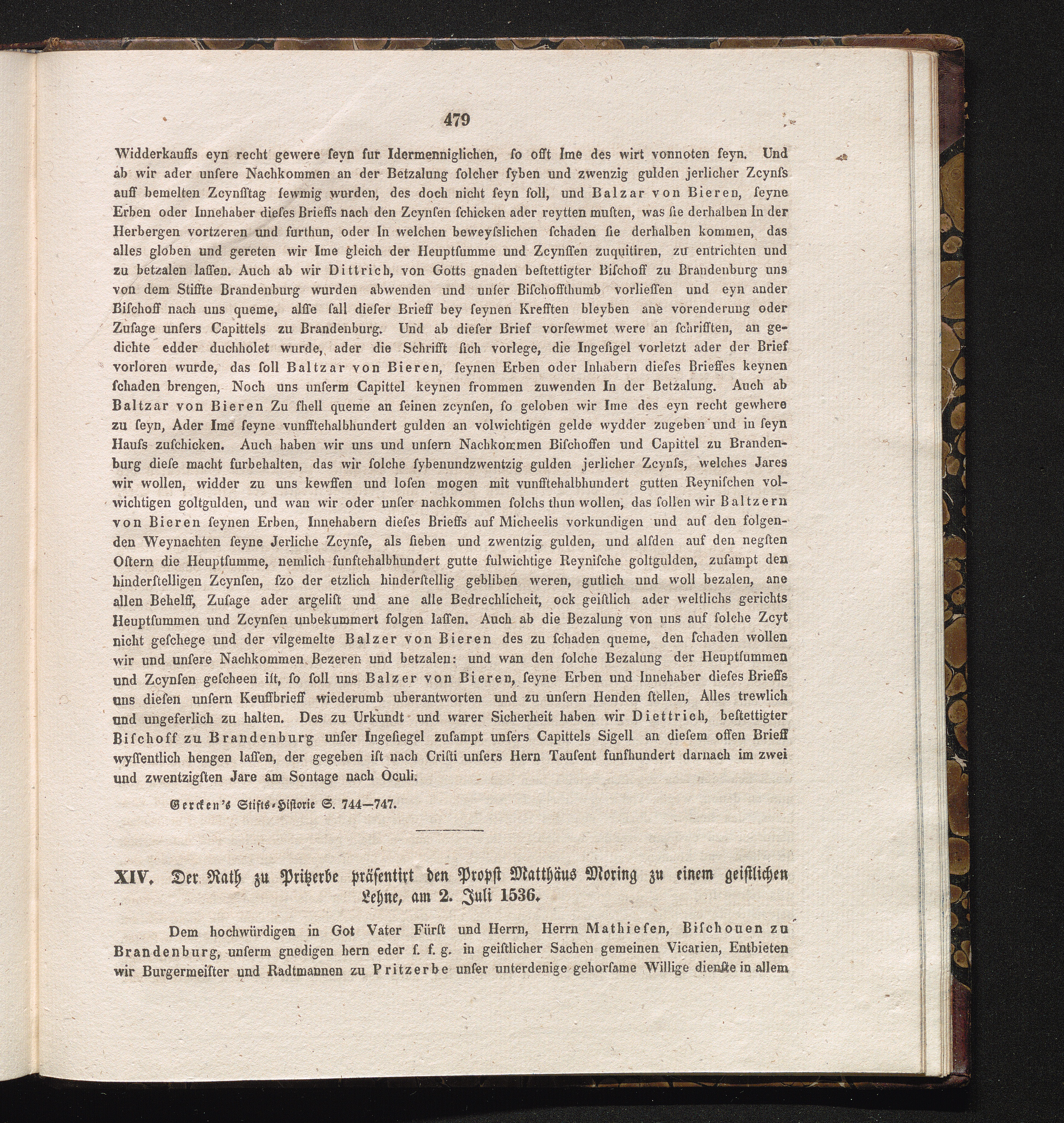 XIV [i.e. XVI]. Der Rath zu Pritzerbe präsentirt den Propst Matthäus Moring zu einem[...]