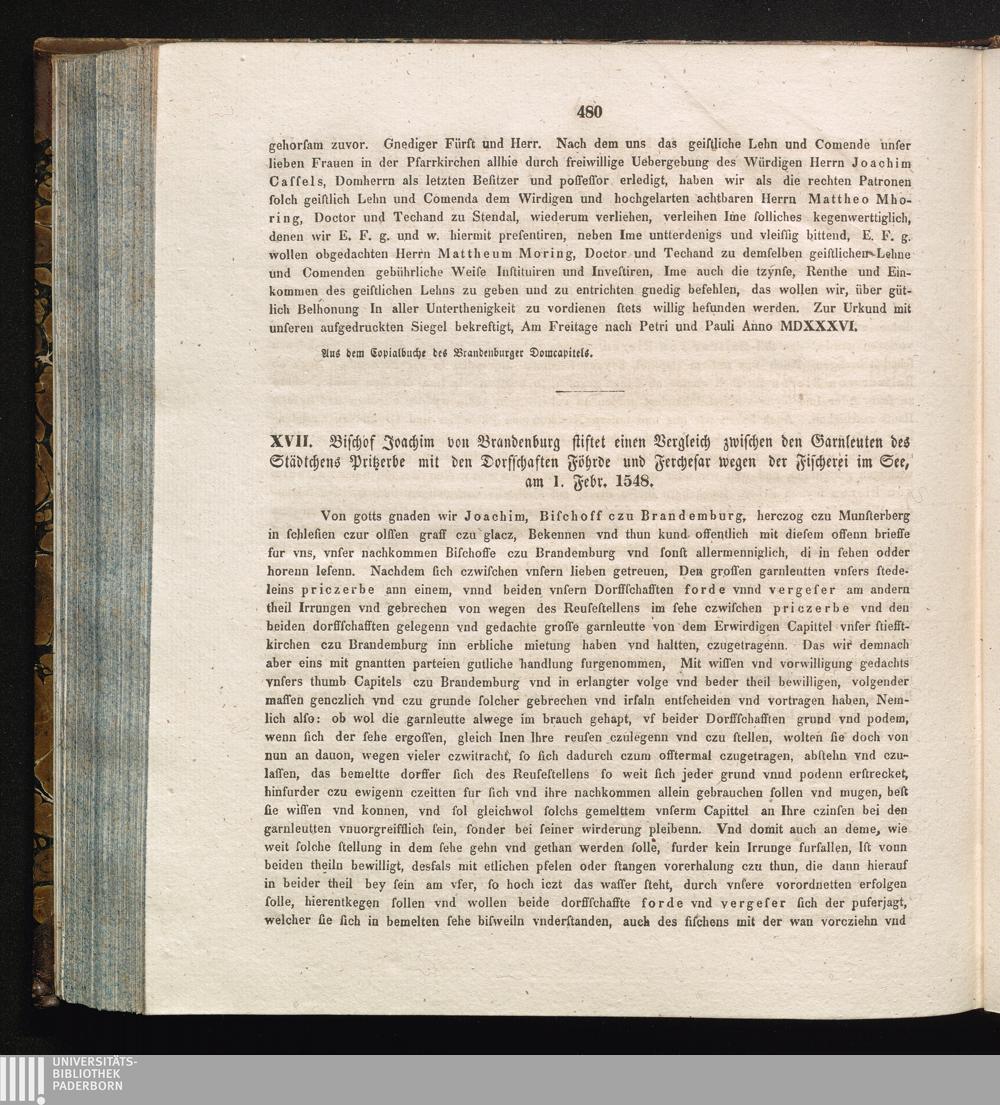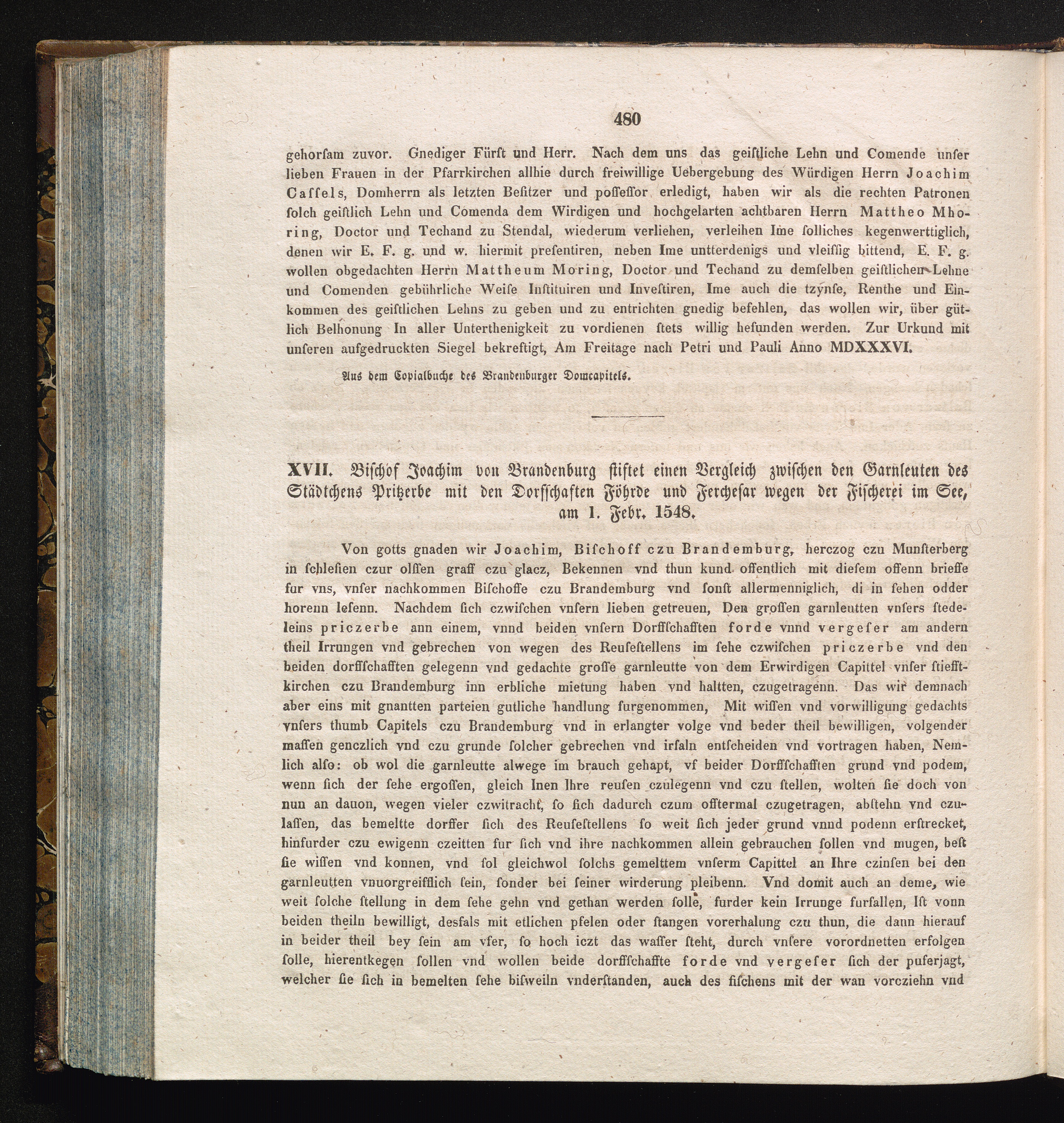XVII. Bischof Joachim von Brandenburg stiftet einen Vergleich zwischen den Garnleuten[...]