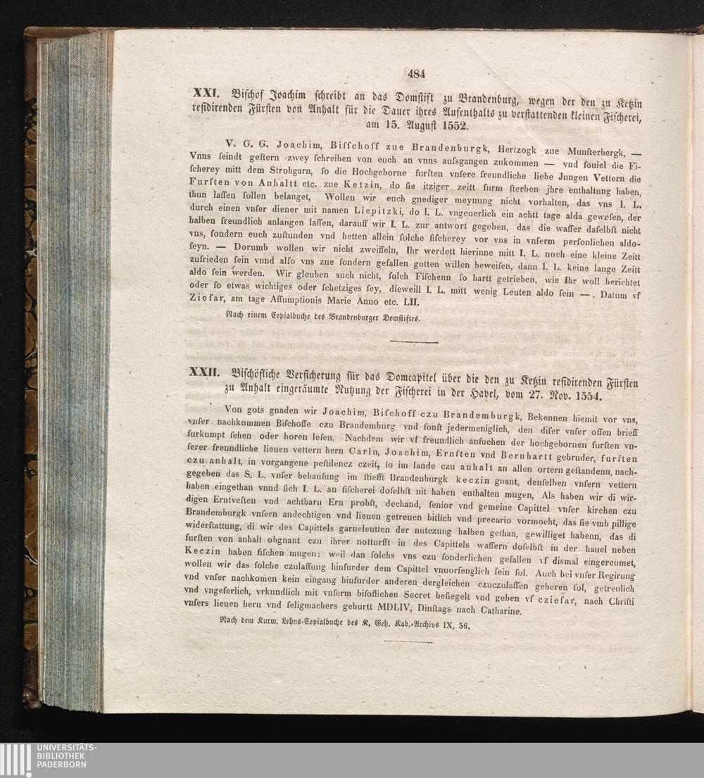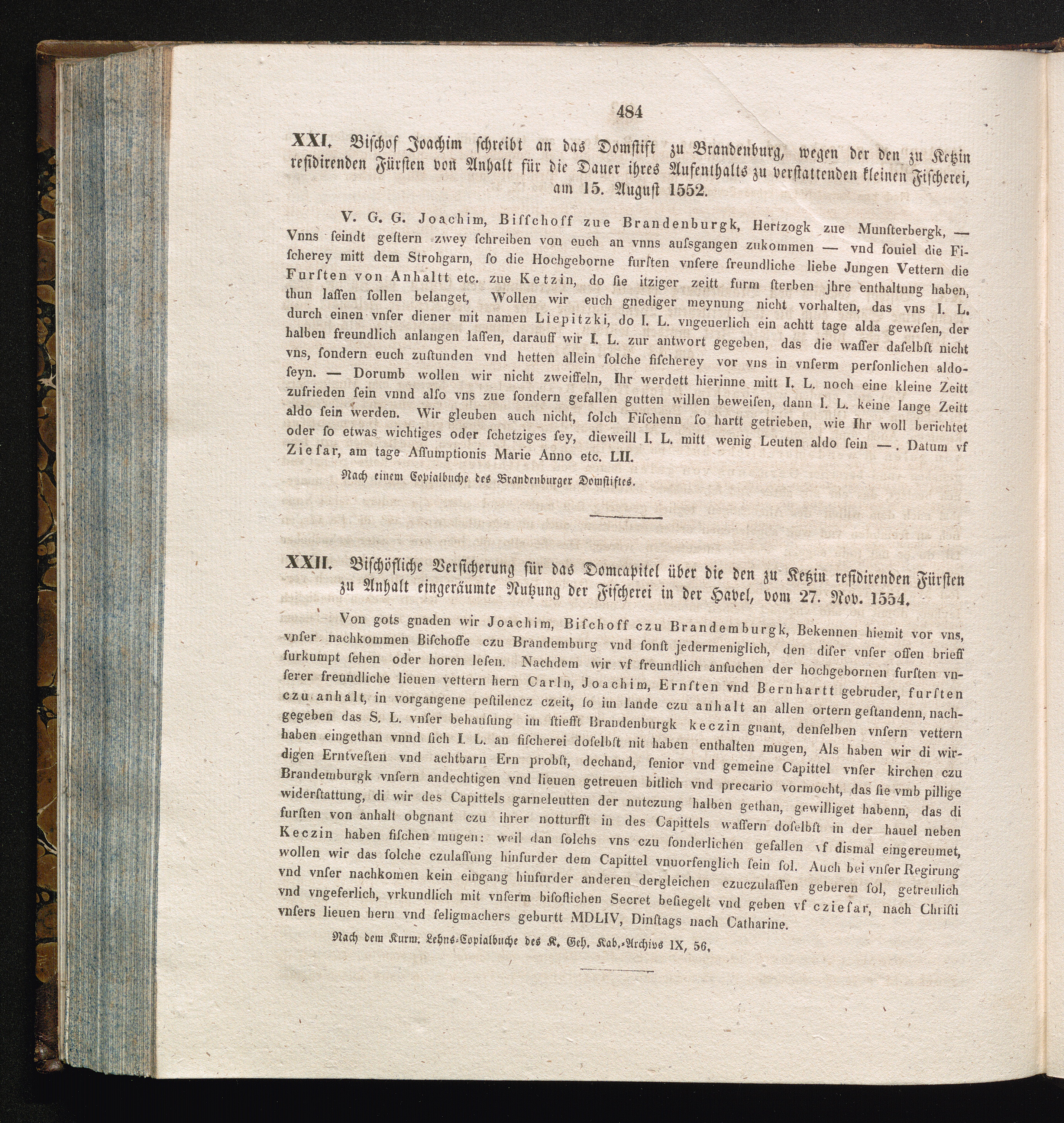 XXII. Bischöfliche Versicherung für das Domcapitel über die den zu Ketzin residirenden[...]