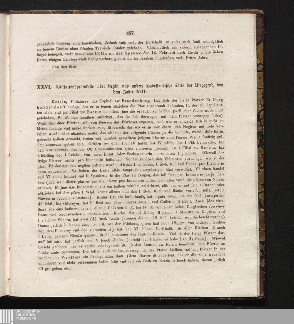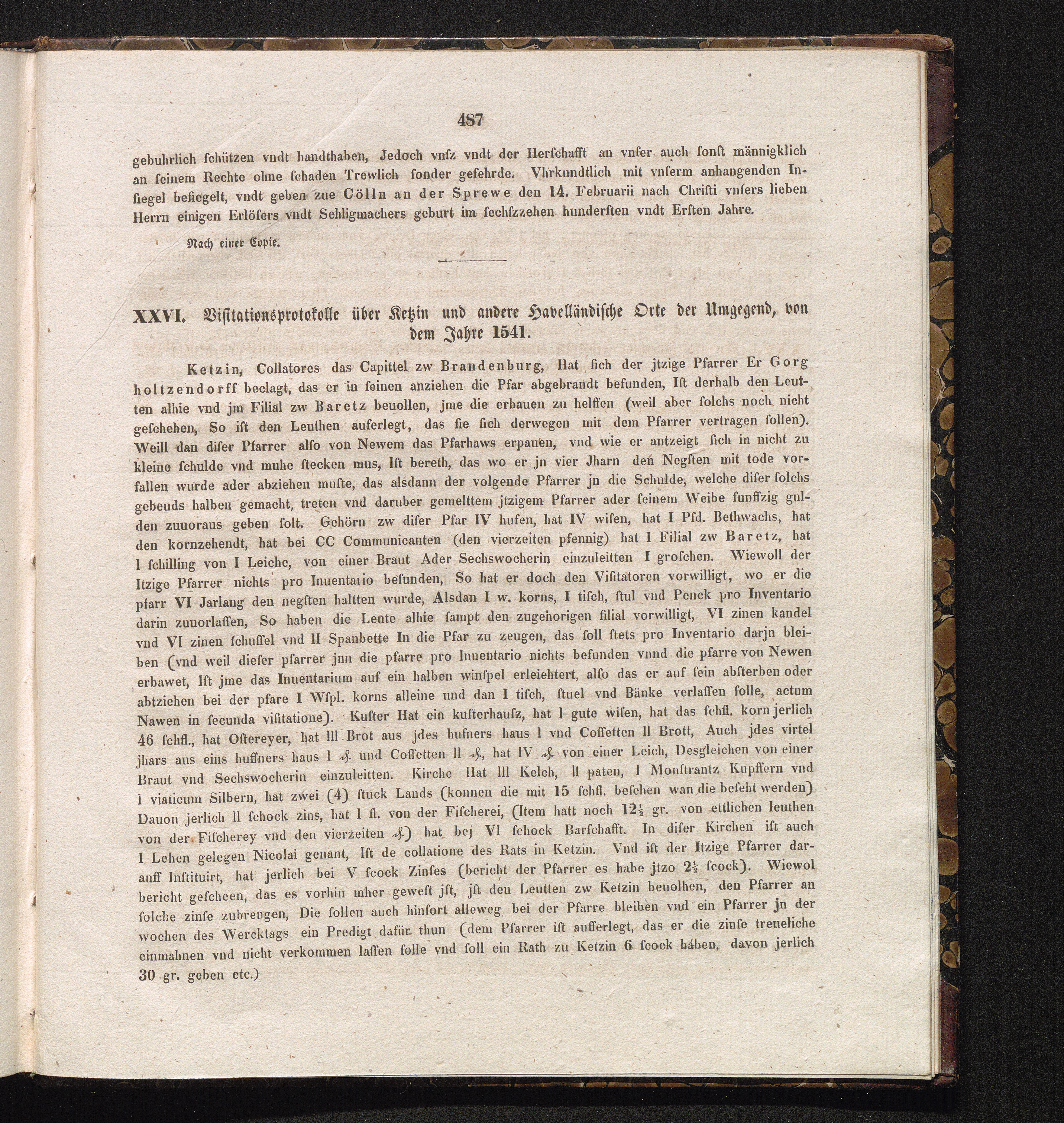 XXVI. Visitationsprotokolle über Ketzin und andere Havelländische Orte der Umgegend,[...]