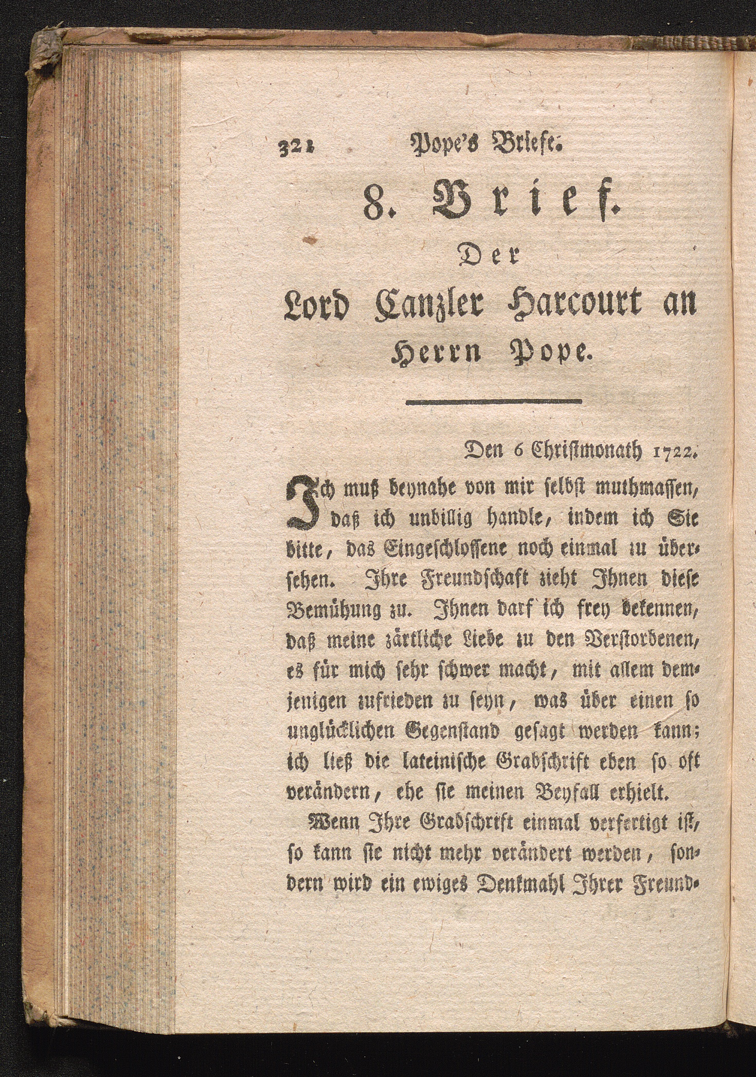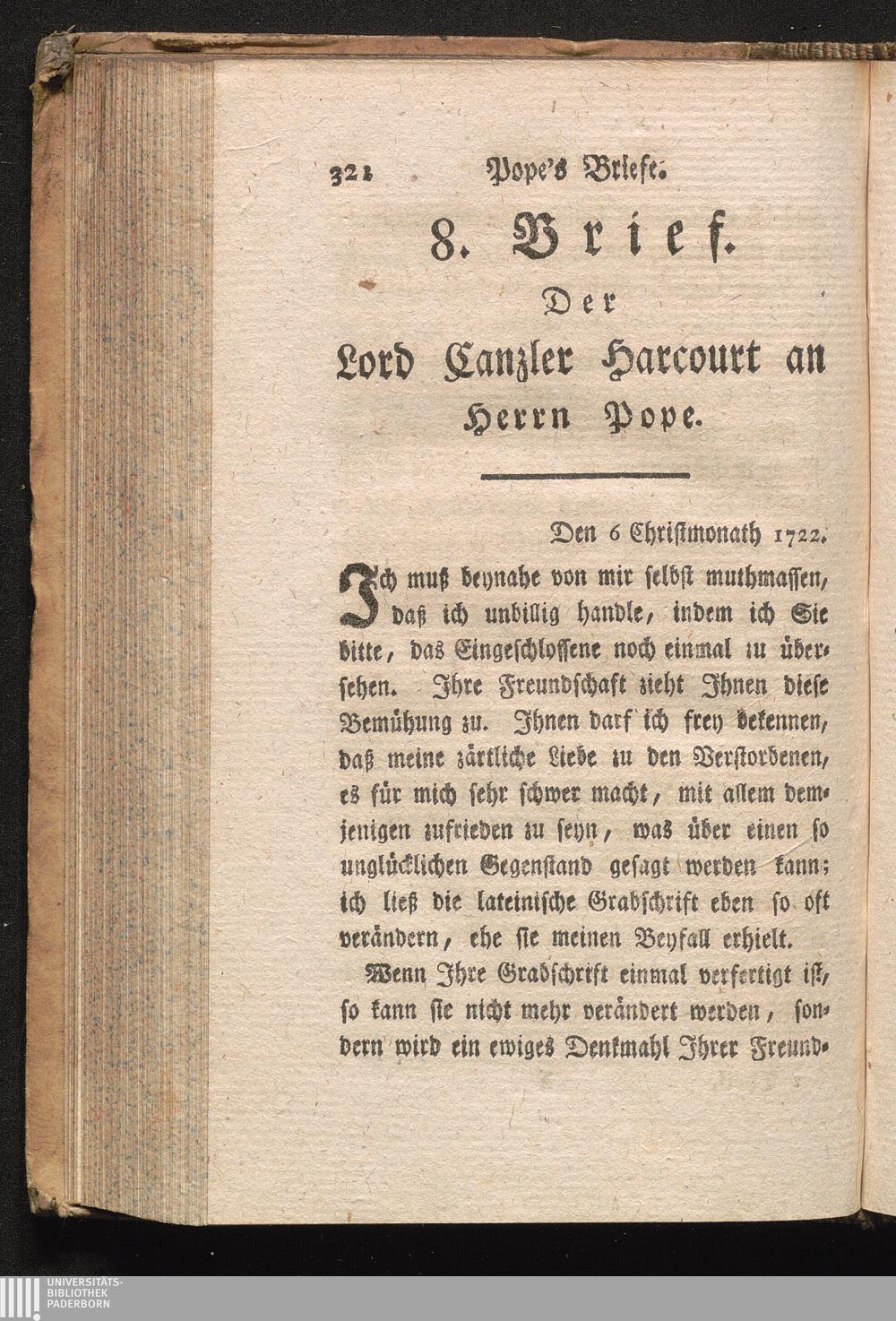 VIII. Von dem Lord Harcourt, über die Grabschrift seines Sohnes.