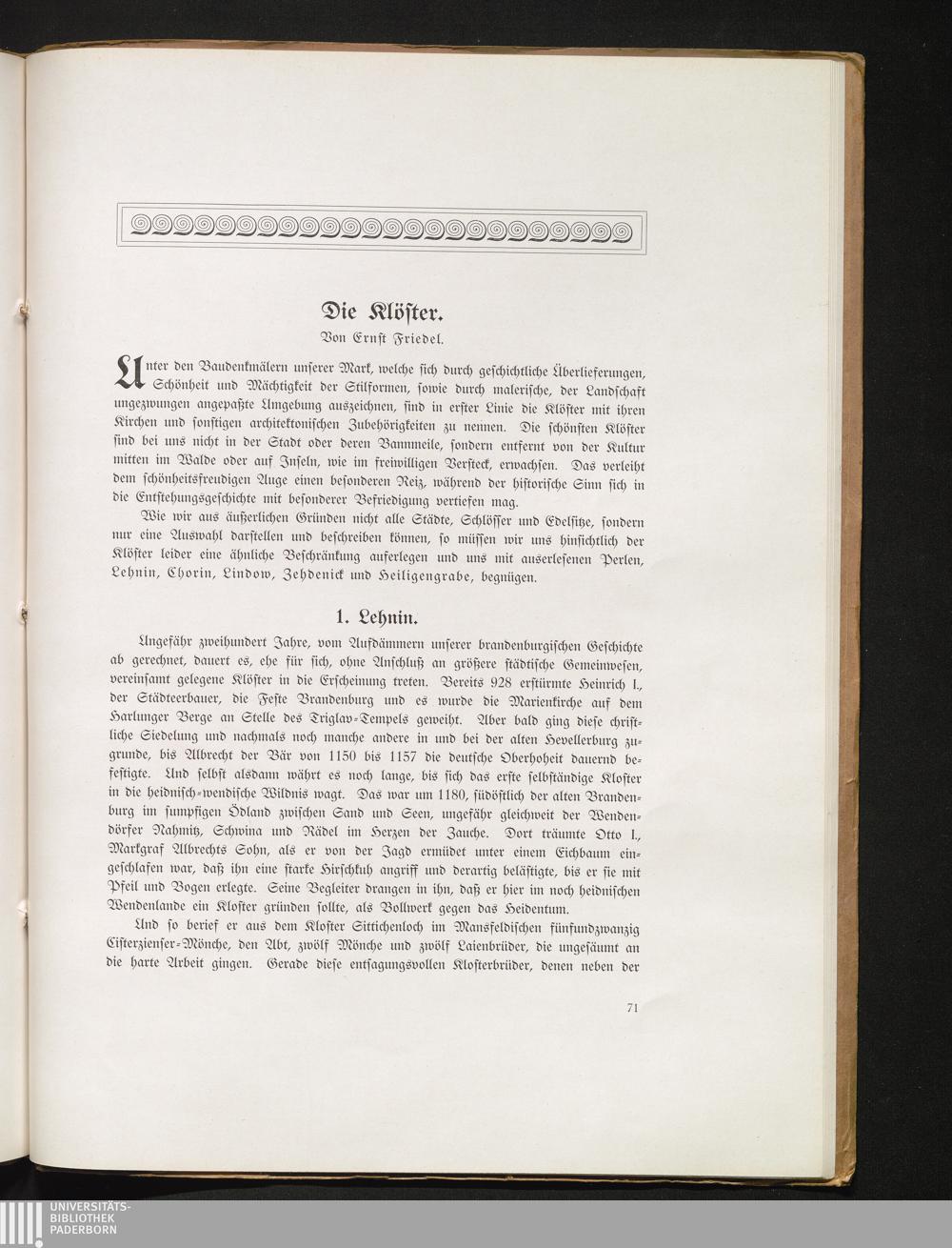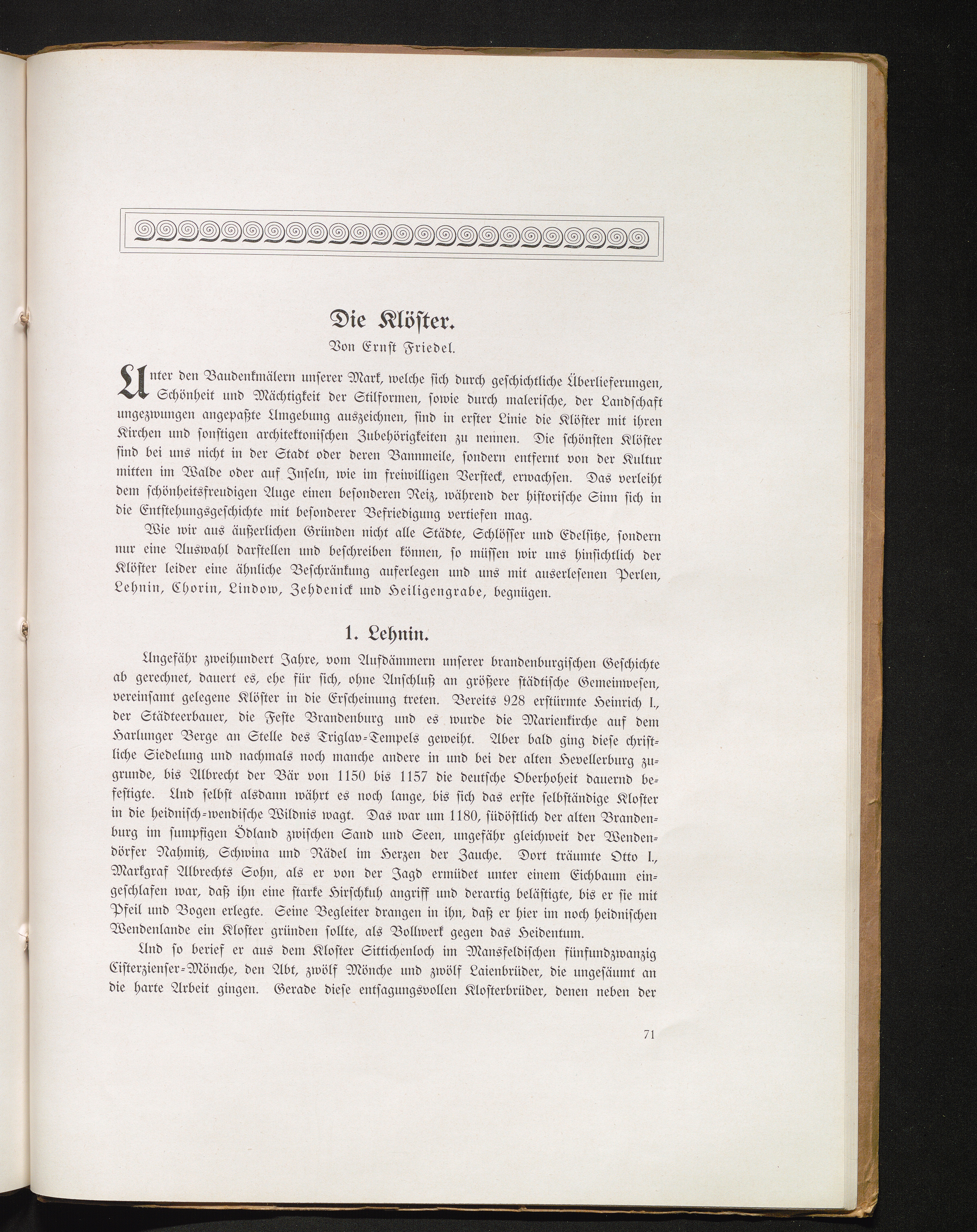 Geh. Regierungsrat Ernst Friedel: Die Klöster