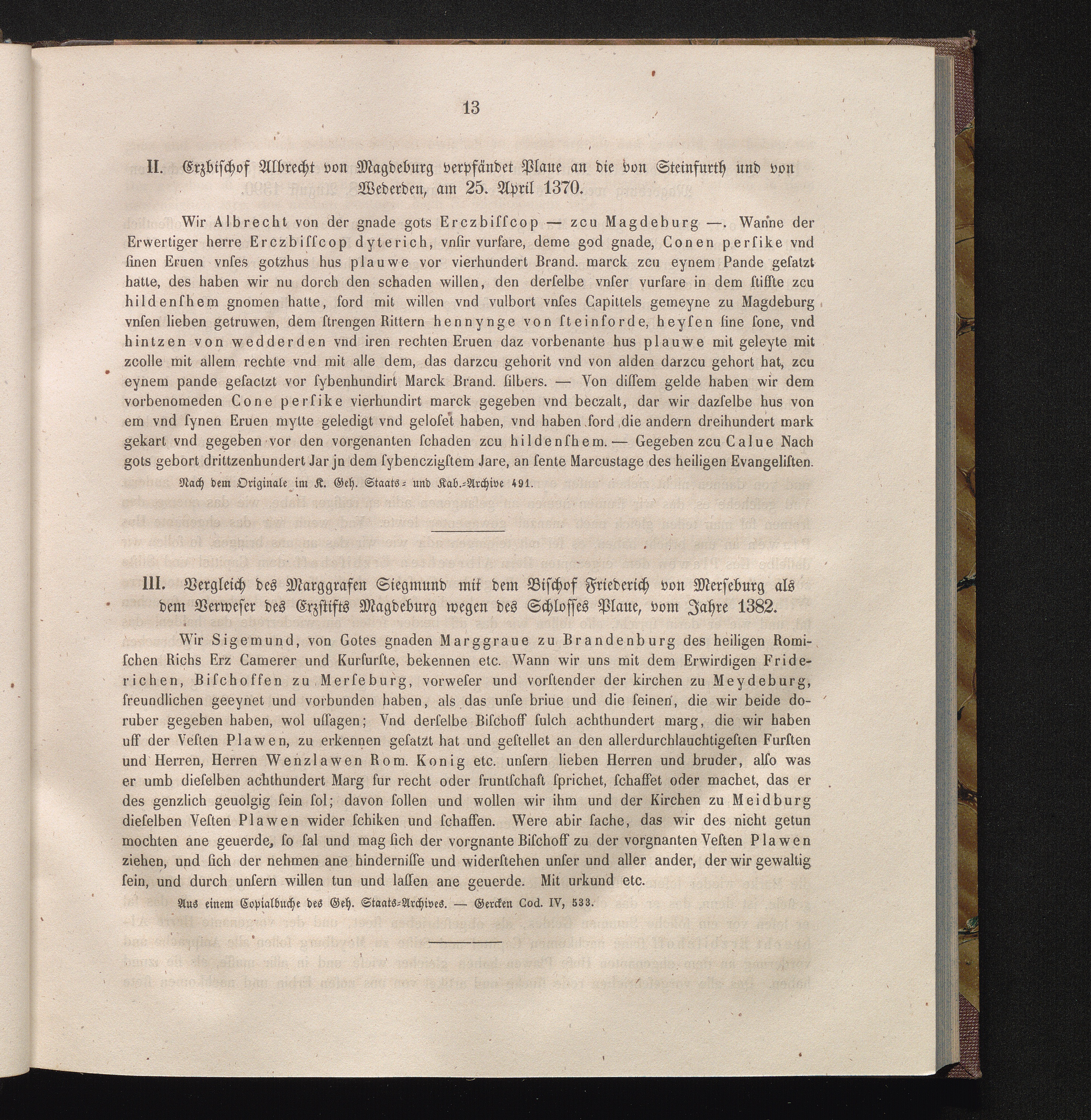 III. Vergleich des Marggrafen Siegmund mit dem Bischof Friedrich von Merseburg als[...]