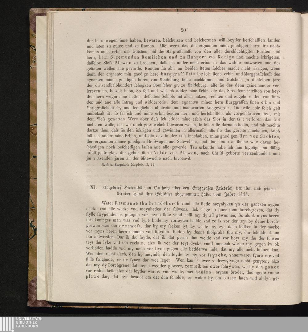 XI. Klagebrief Dieterichs von Quitzow über den Burggrafen Friedrich, der ihm und[...]