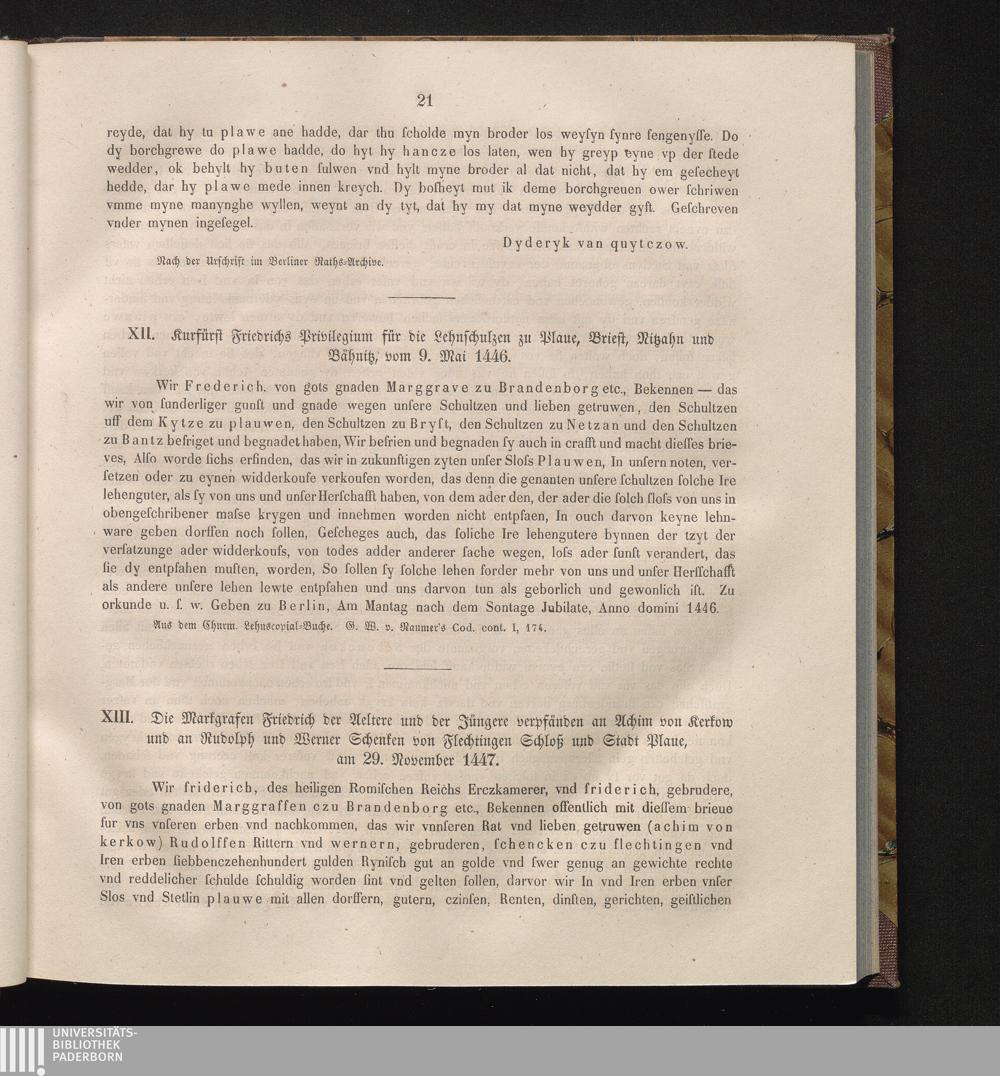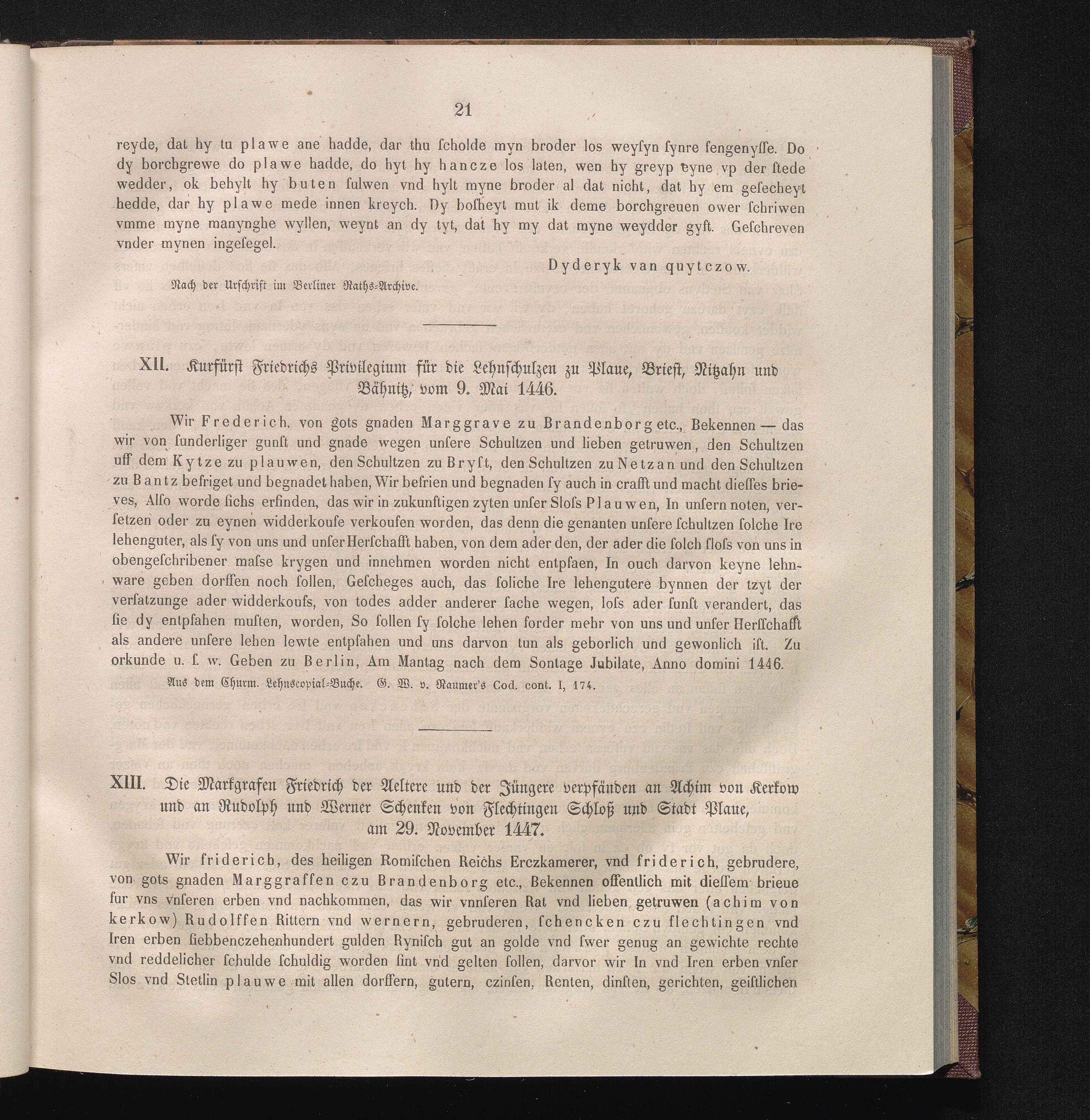 XIII. Die Markgrafen Friedrich der Aeltere und der Jüngere verpfänden an Achim von[...]