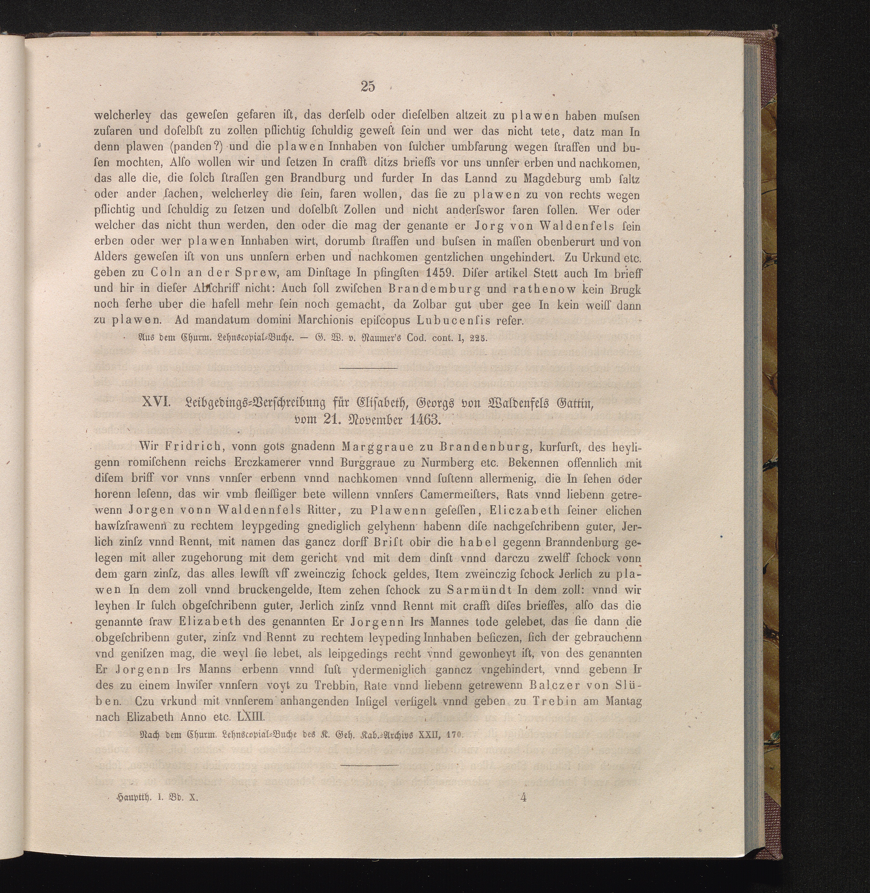XVI. Leibgedings-Verschreibung für Elisabeth, Georgs von Waldenfels Gattin, vom 21.[...]
