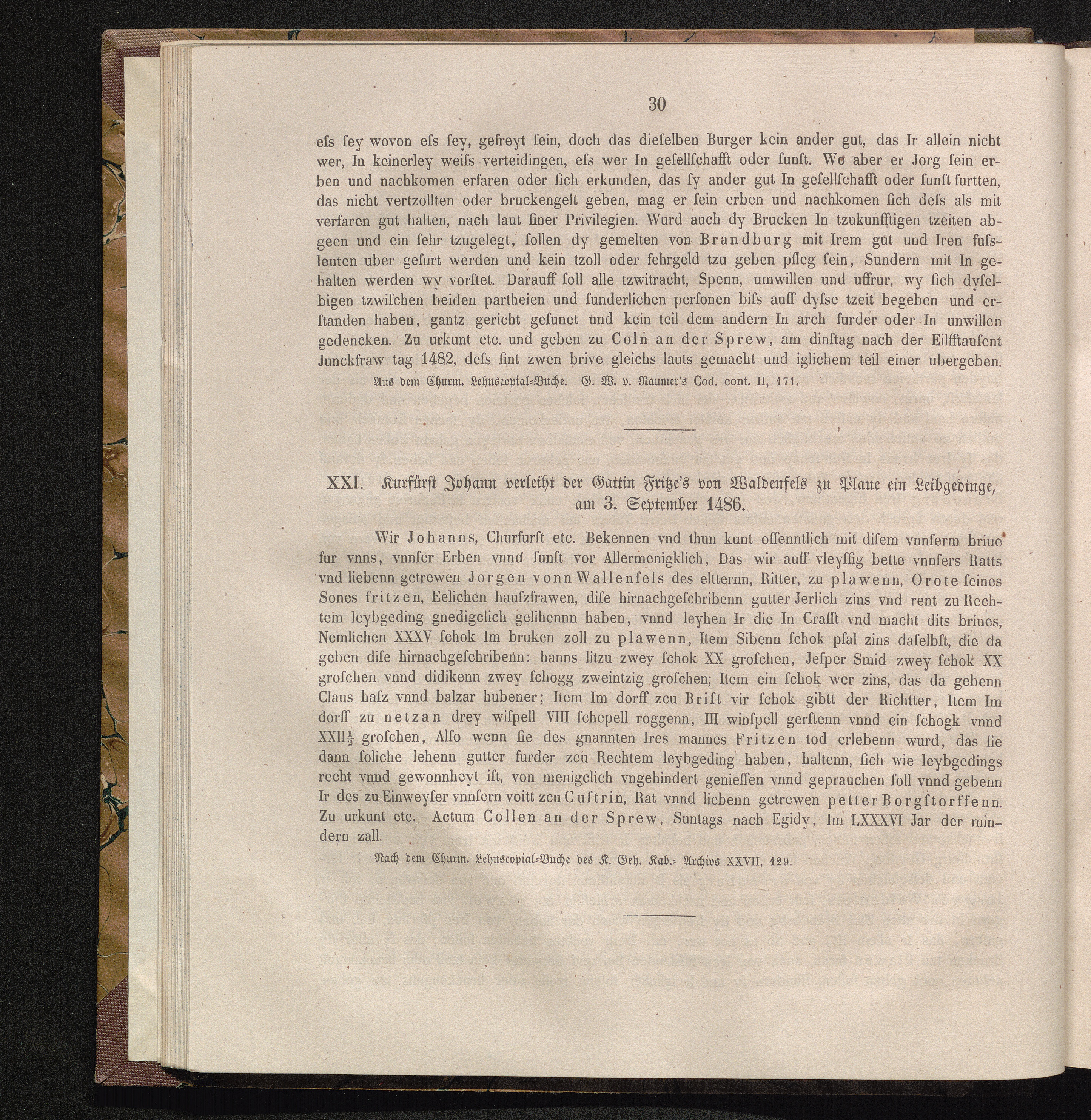 XXI. Kurfürst Johann verleiht der Gattin Fritze`s von Waldenfels zu Plaue ein Leibgedinge,[...]