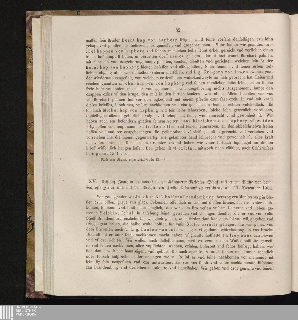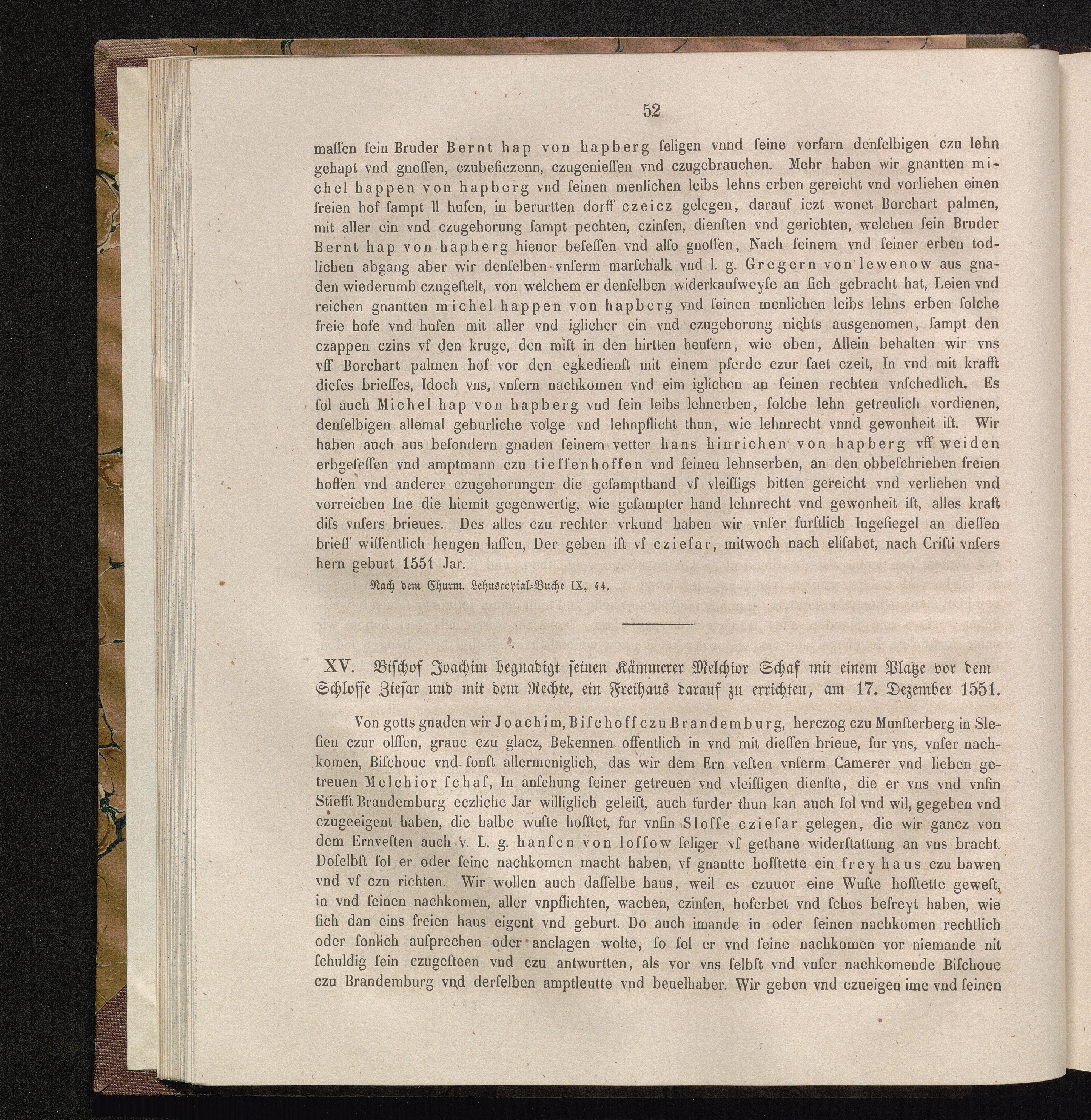 XV. Bischof Joachim begnadigt seinen Kämmerer Melchior Schaf mit einem Platze vor[...]
