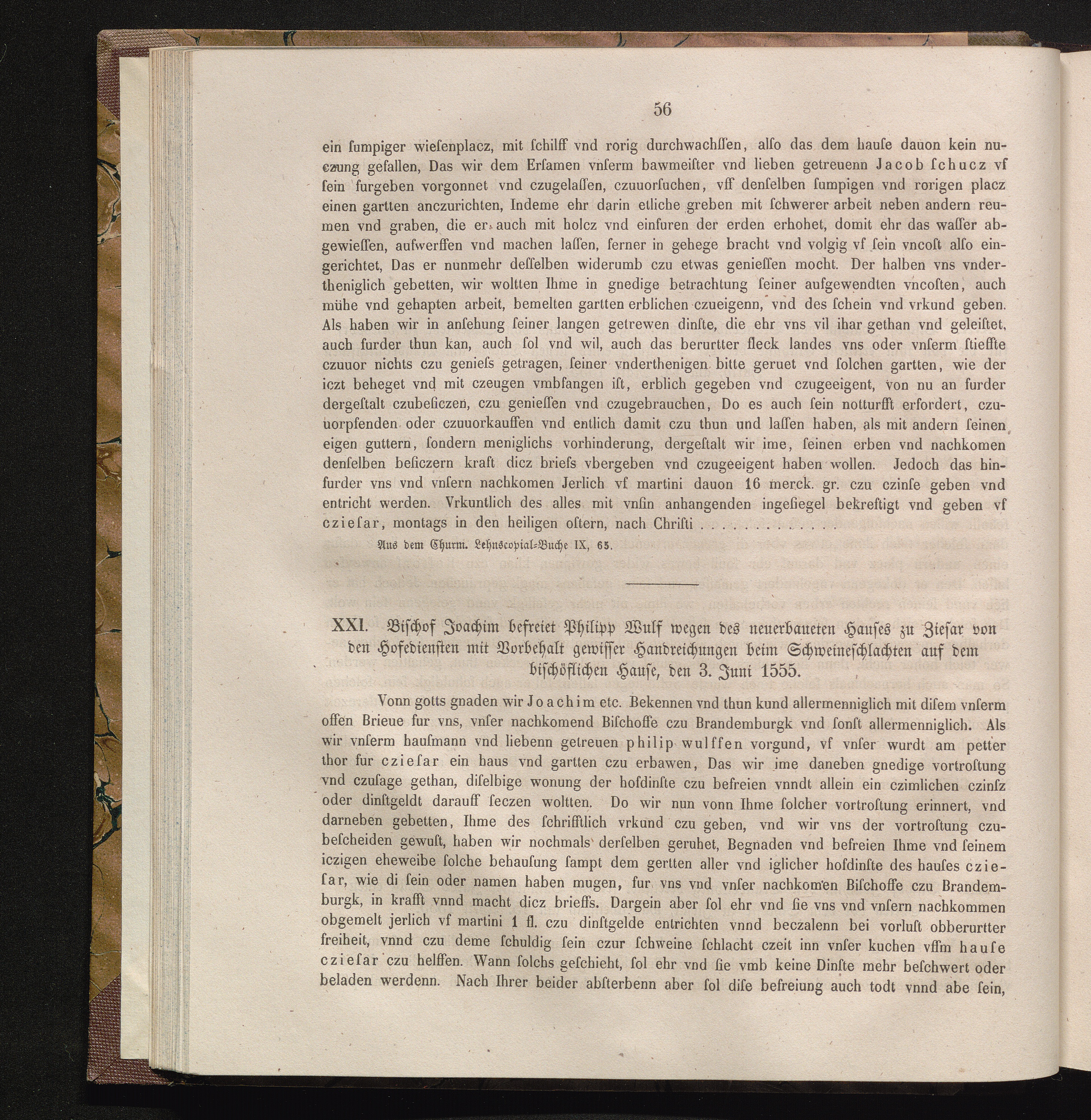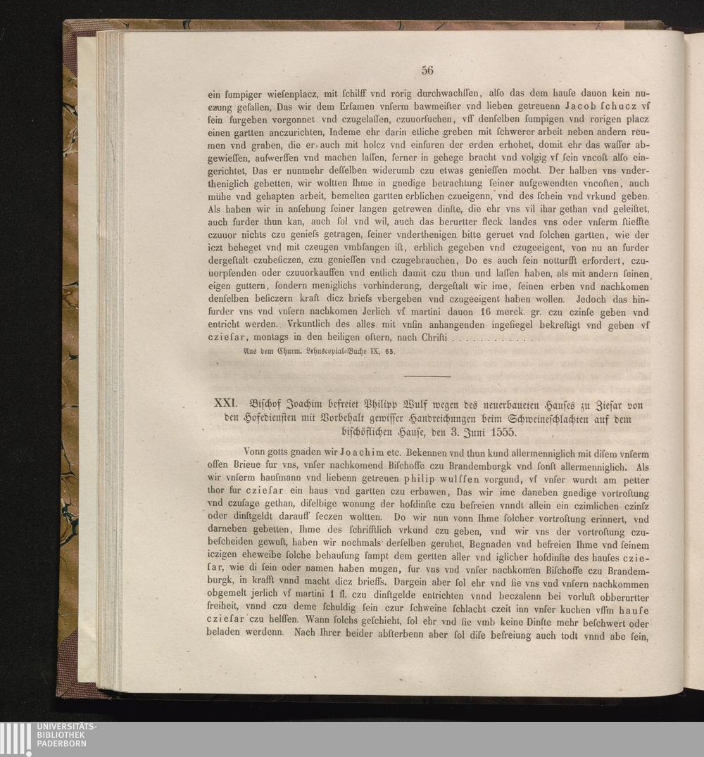 XXI. Bischof Joachim befreiet Philipp Wulf wegen des neuerbaueten Hauses zu Ziesar[...]