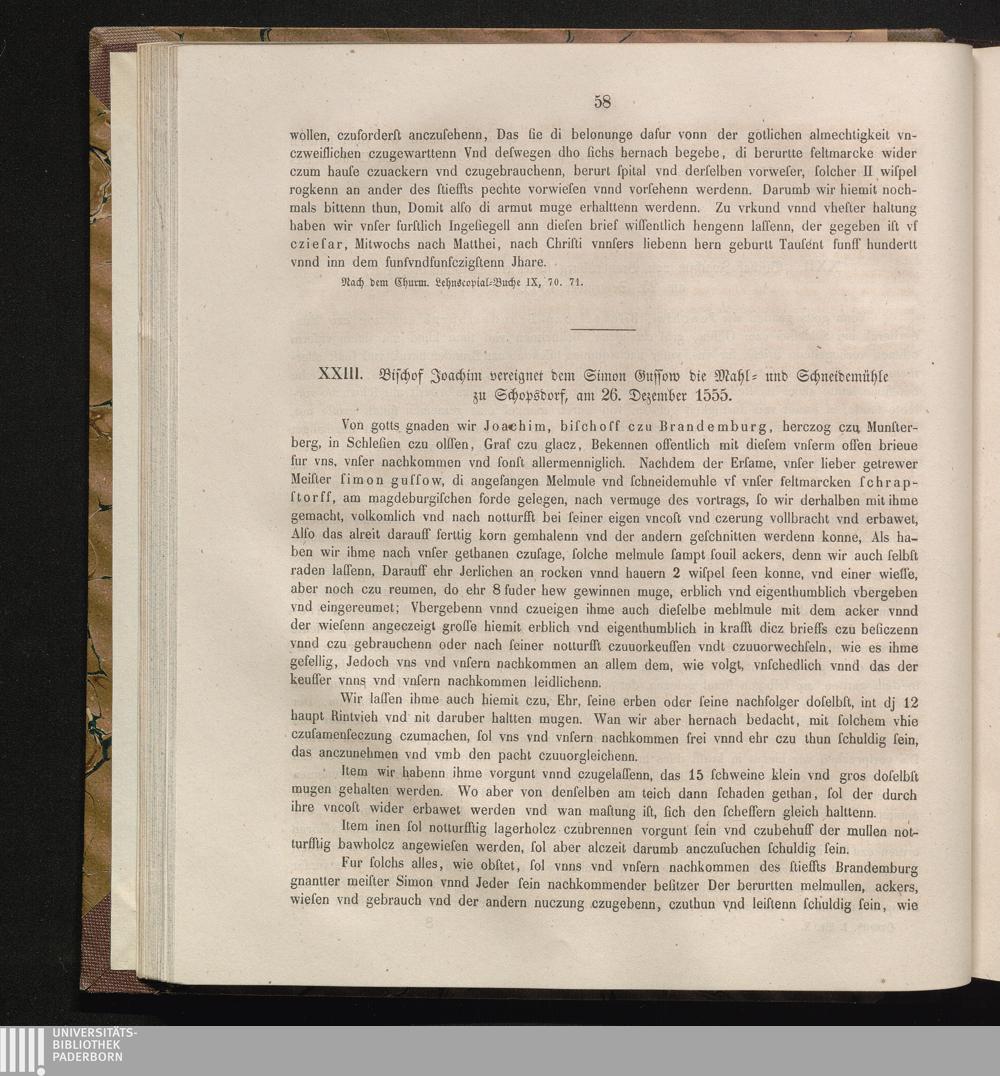 XXIII. Bischof Joachim vereignet dem Simon Gussow die Mahl- und Schneidemühle zu[...]