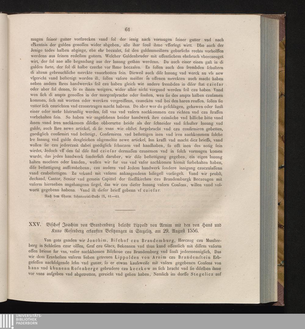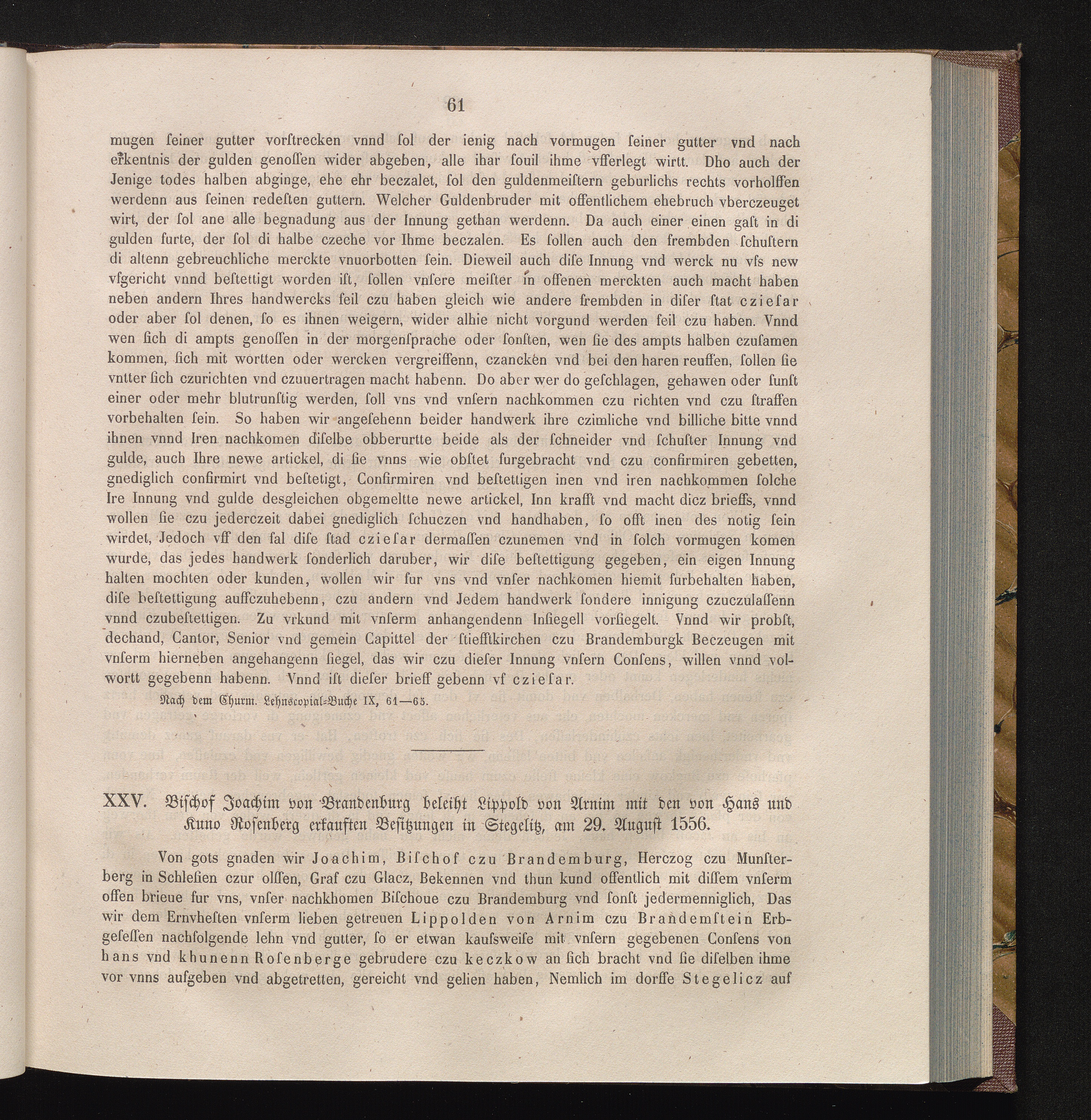 XXV. Bischof Joachim von Brandenburg beleiht Lippold von Arnim mit den von Hans und[...]