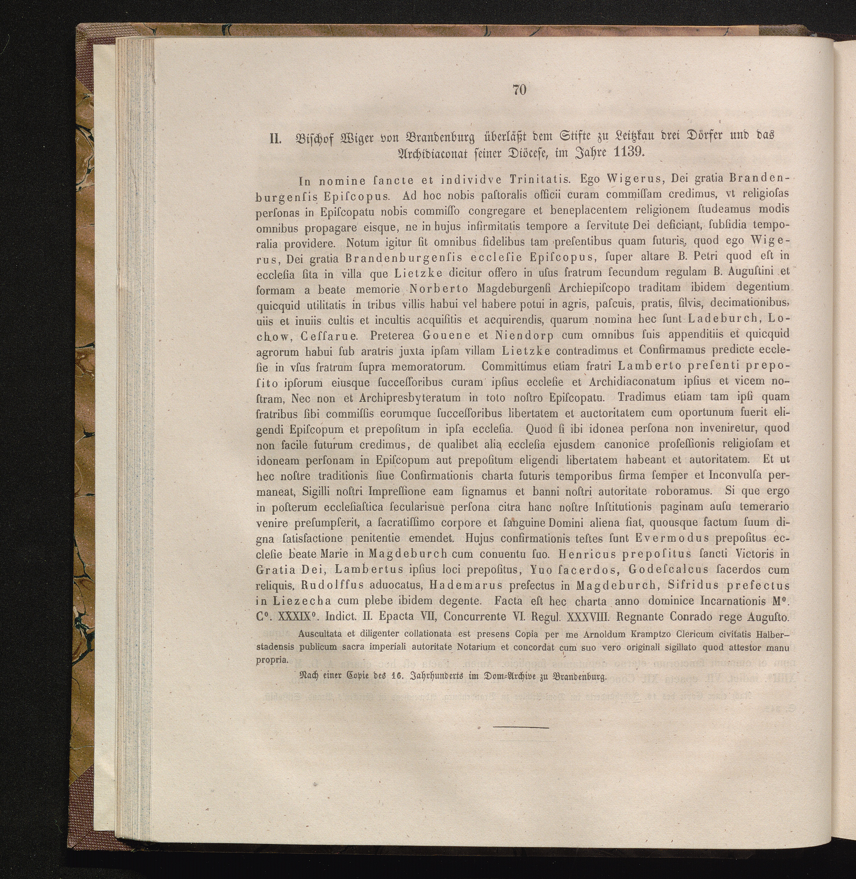II. Bischof Wiger von Brandenburg überläßt dem Stifte zu Leitzkau drei Dörfer und[...]