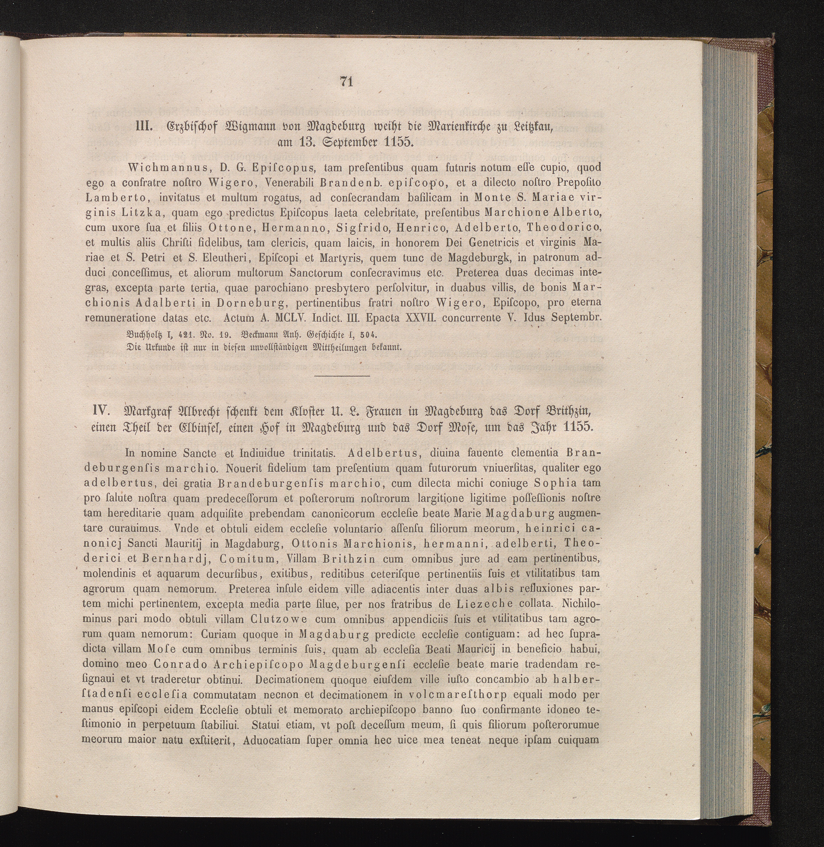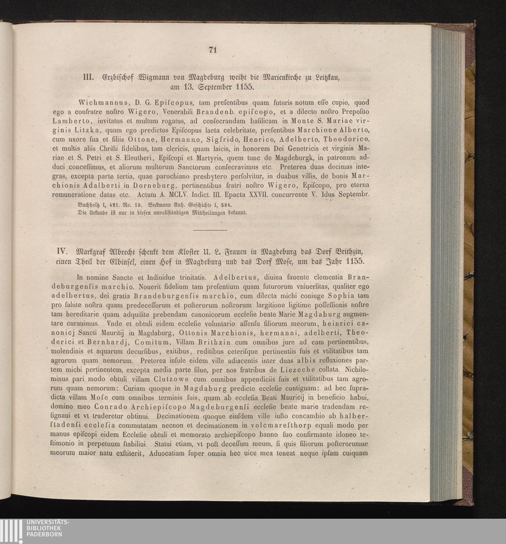 IV. Markgraf Albrecht schenkt dem Kloster U. L. Frauen in Magdeburg das Dorf Brithzin,[...]