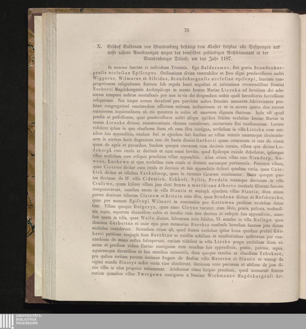 X. Bischof Balderam von Brandenburg bestätigt dem Kloster Leitzkau alle Besitzungen[...]