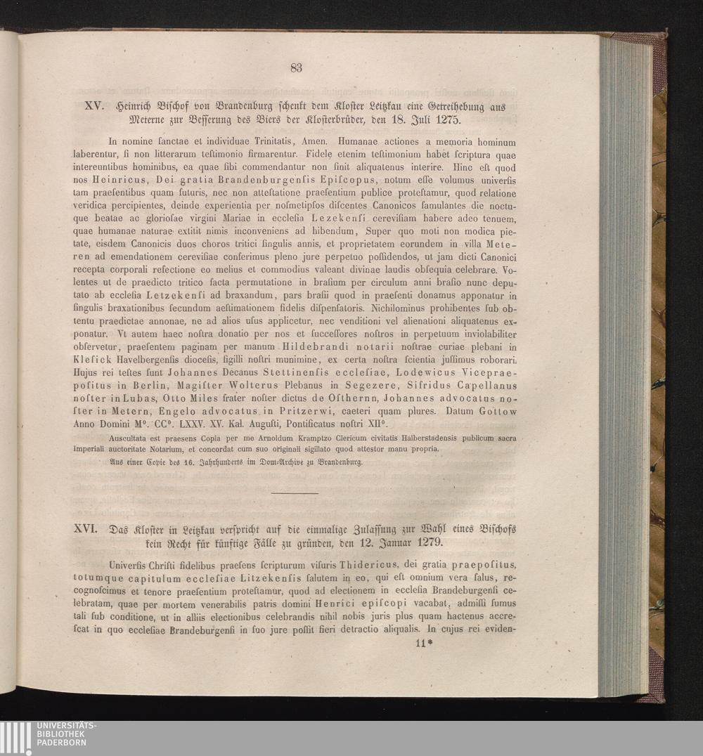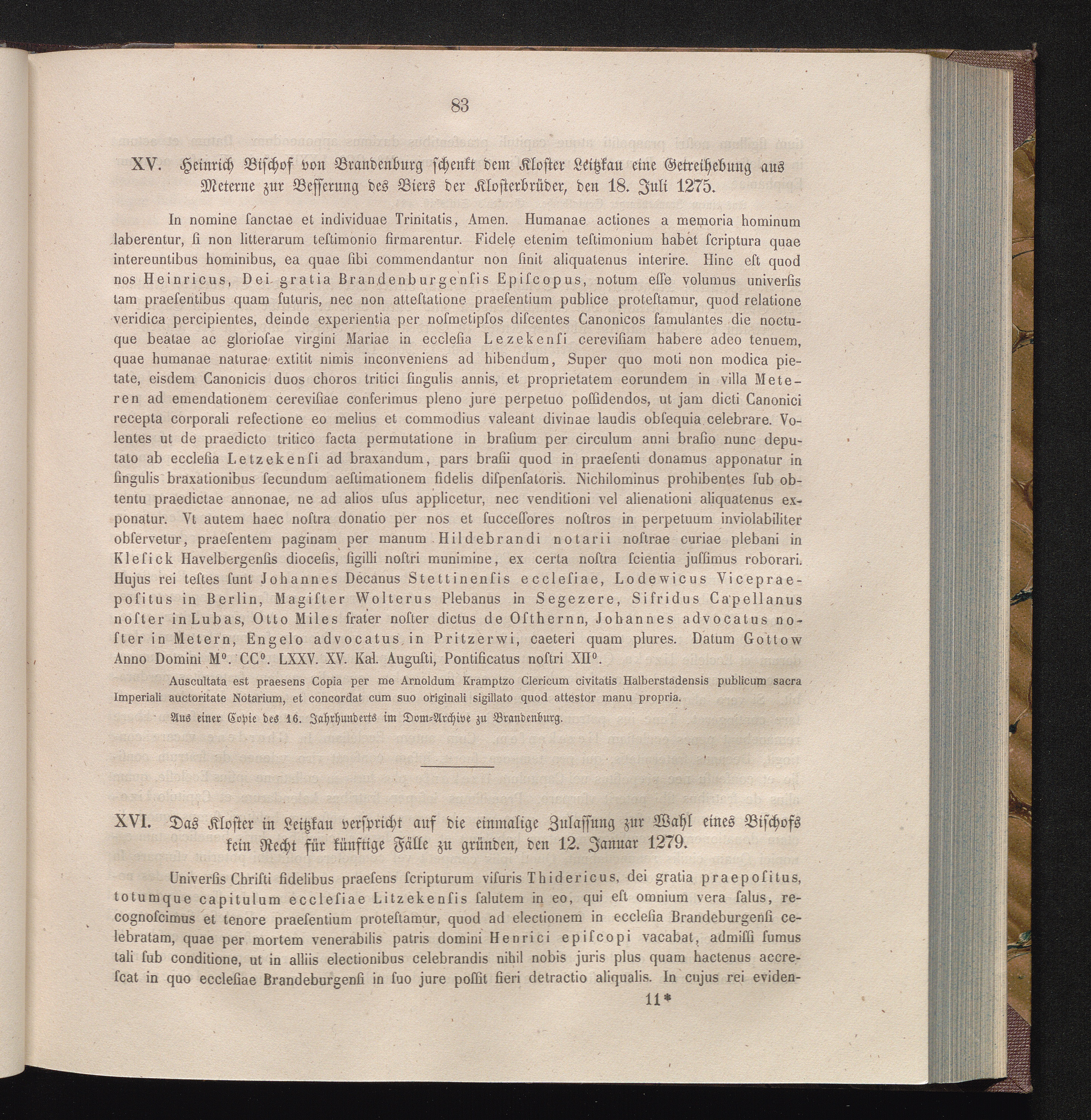 XVI. Das Kloster in Leitzkau verspricht auf die einmalige Zulassung zur Wahl eines[...]