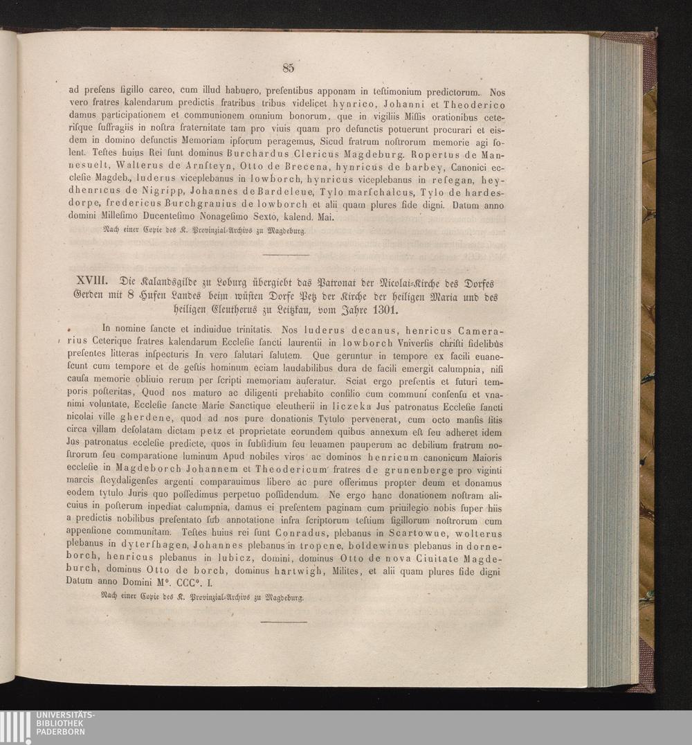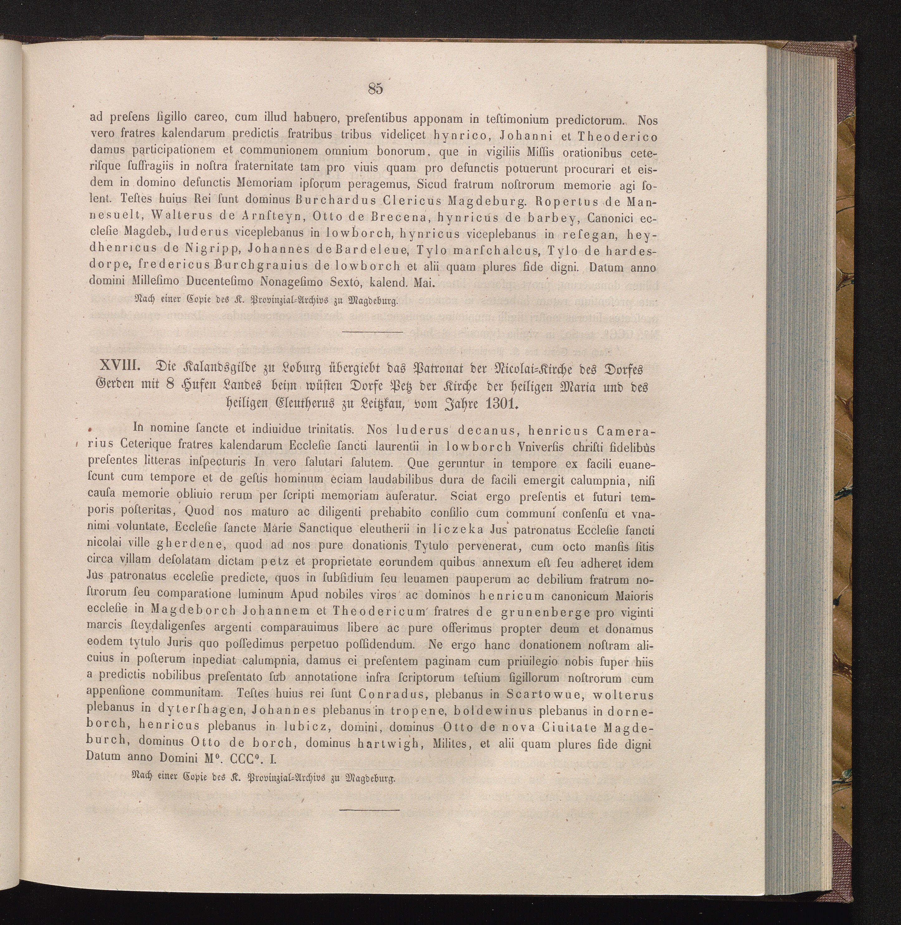 XVIII. Die Kalandsgilde zu Loburg übergiebt das Patronat der Nicolai-Kirche des Dorfes[...]