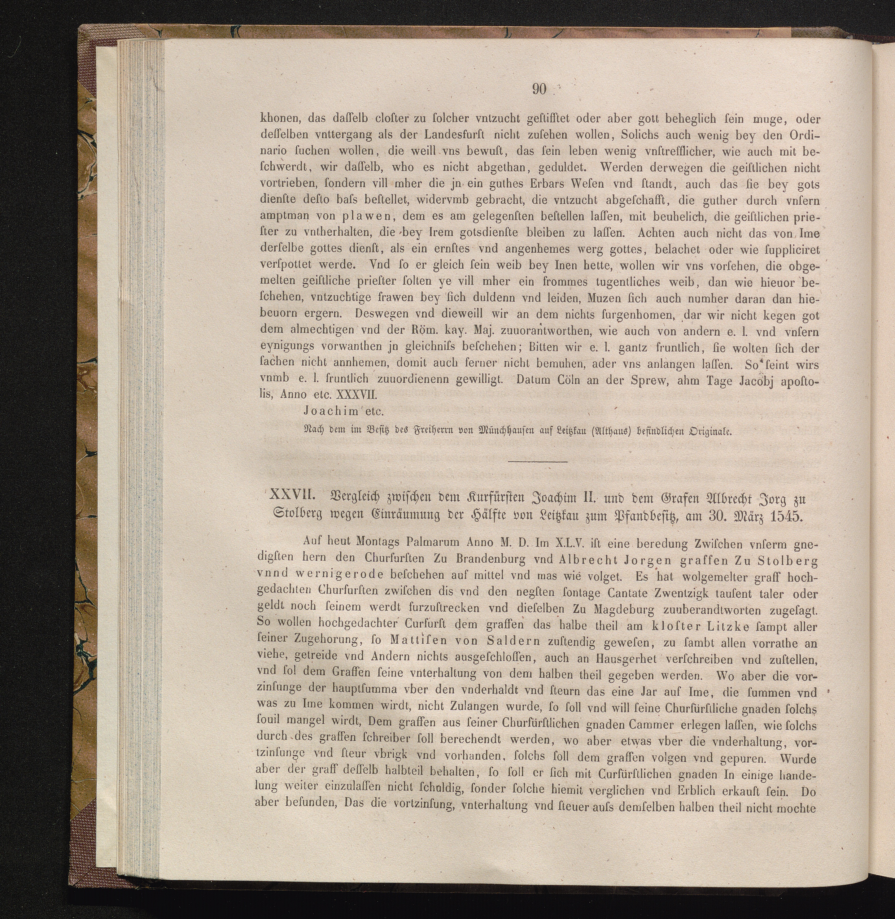 XXVII. Vergleich zwischen dem Kurfürsten Joachim II. und dem Grafen Albrecht Jorg[...]