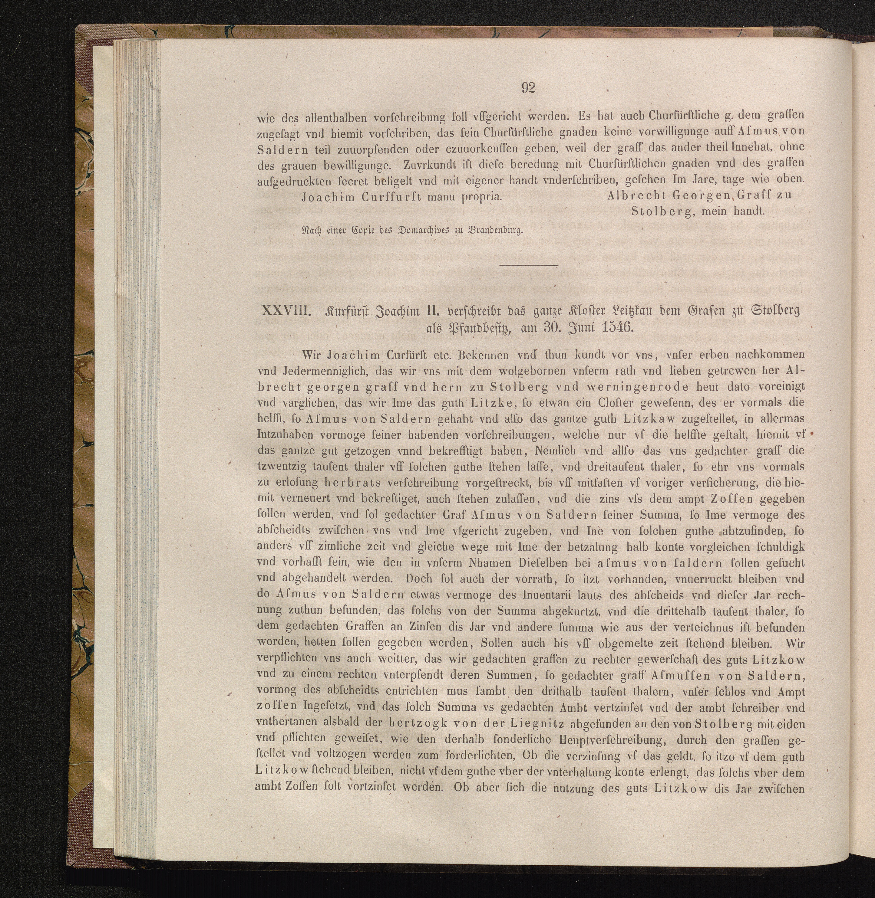 XXVIII. Kurfürst Joachim II. verschreibt das ganze Kloster Leitzkau dem Grafen zu[...]