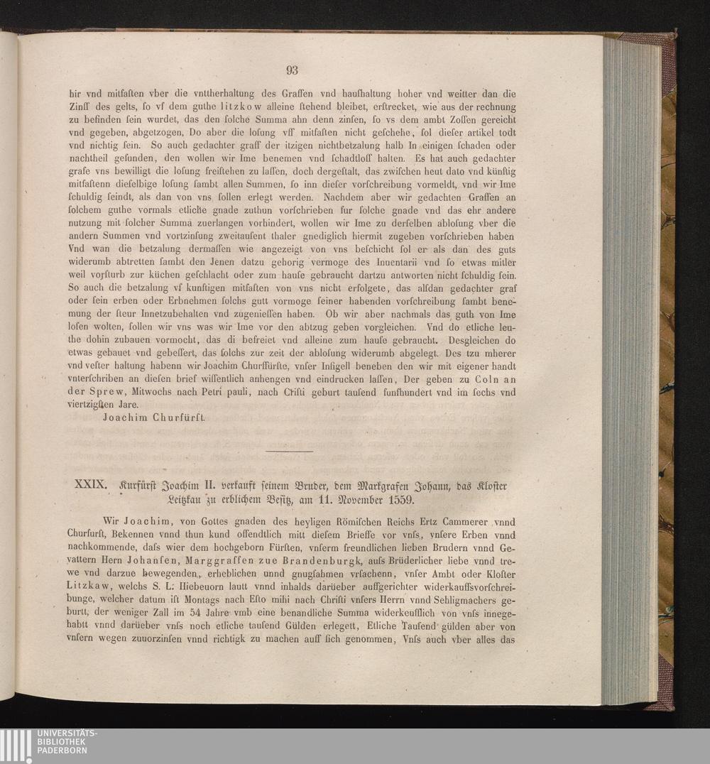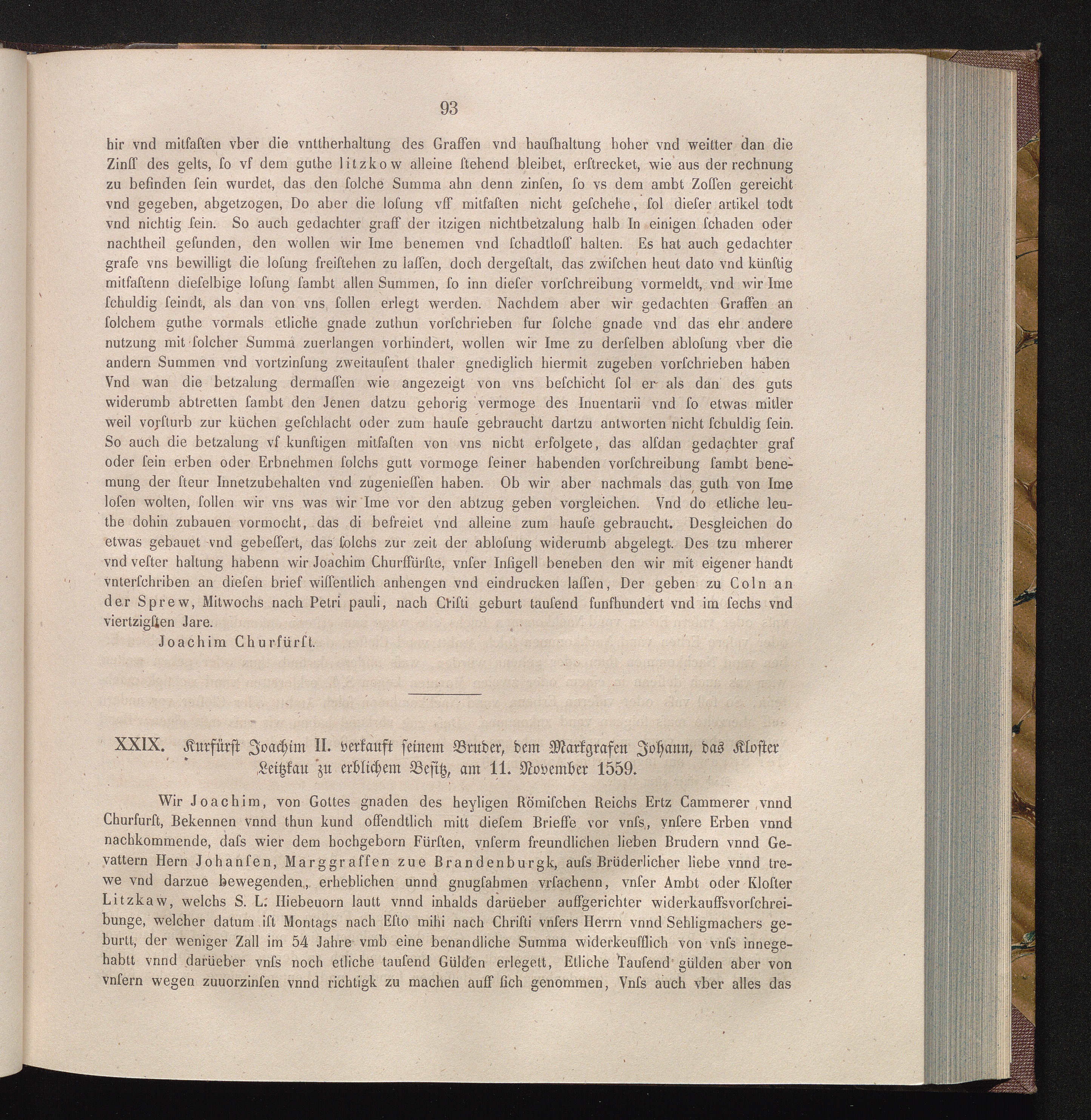 XXIX. Kurfürst Joachim II. verkauft seinem Bruder, dem Markgrafen Johann, das Kloster[...]