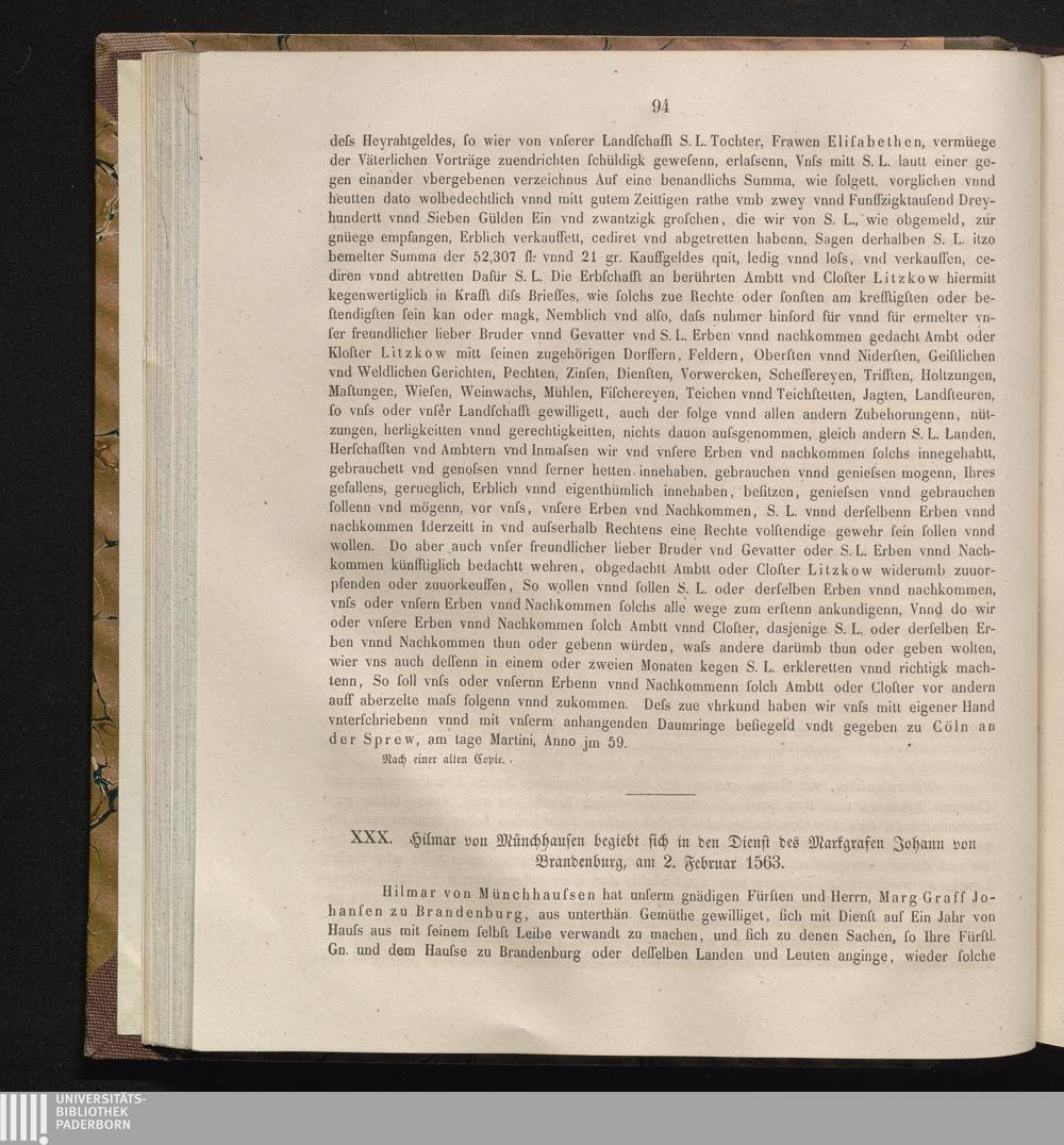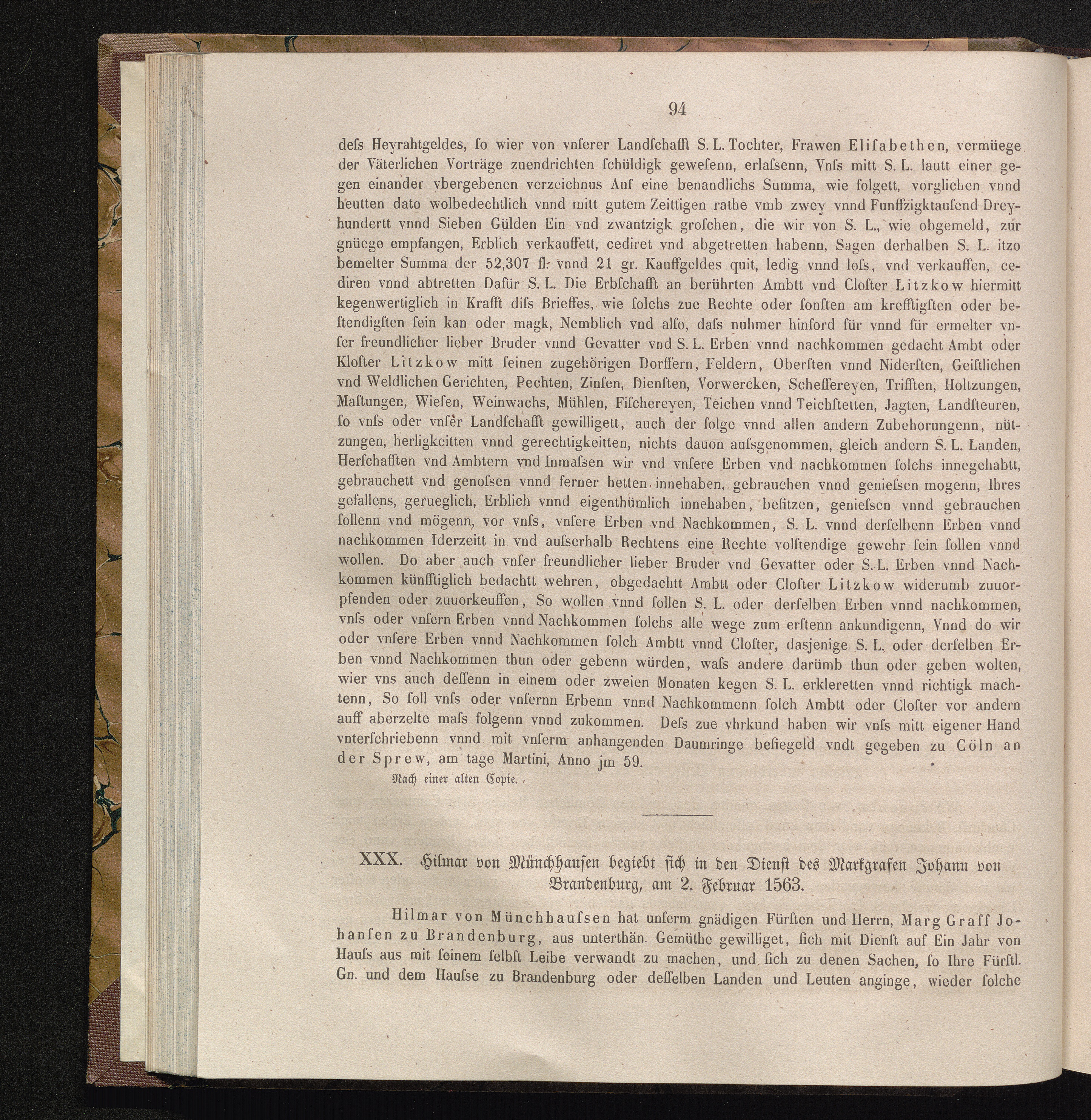 XXX. Hilmar zu Münchhausen begiebt sich in den Dienst des Markgrafen Johann von Brandenburg,[...]
