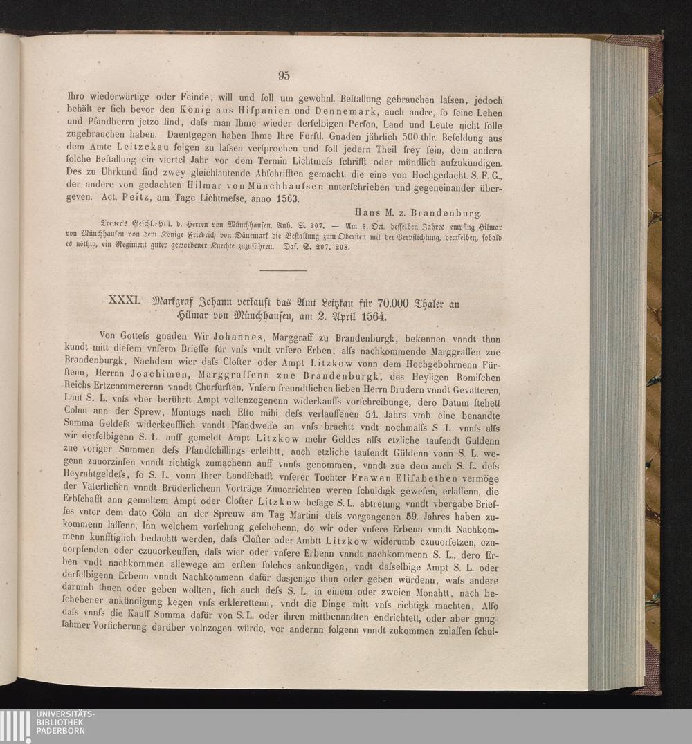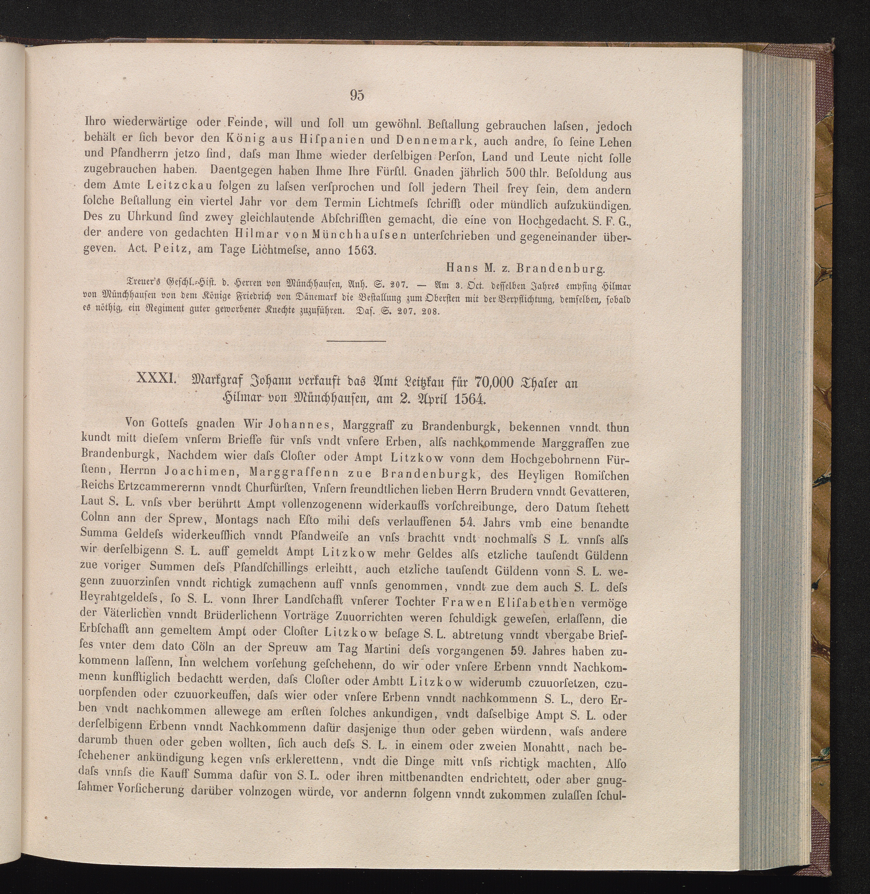 XXXI. Markgraf Johann verkauft das Amt Leitzkau für 70,000 Thaler an Hilmar von Münchhausen,[...]