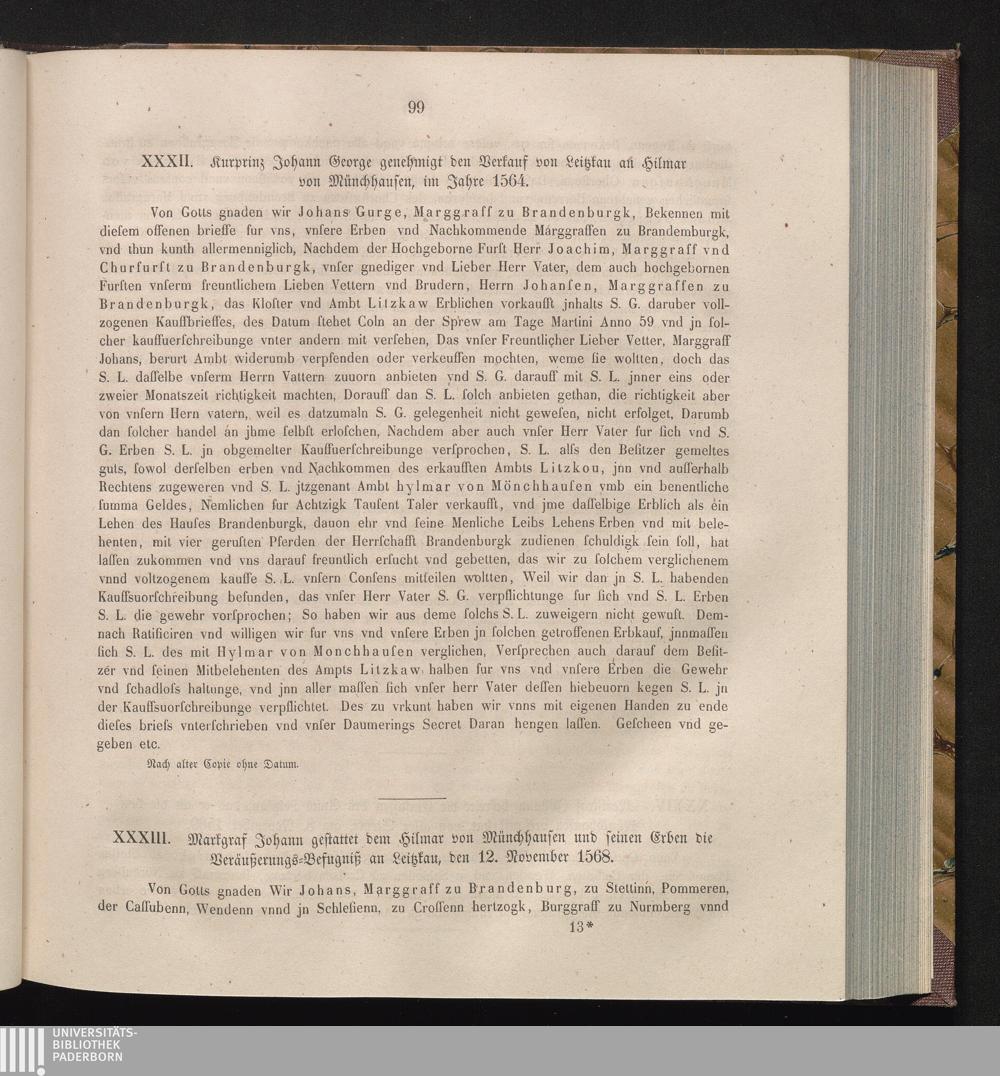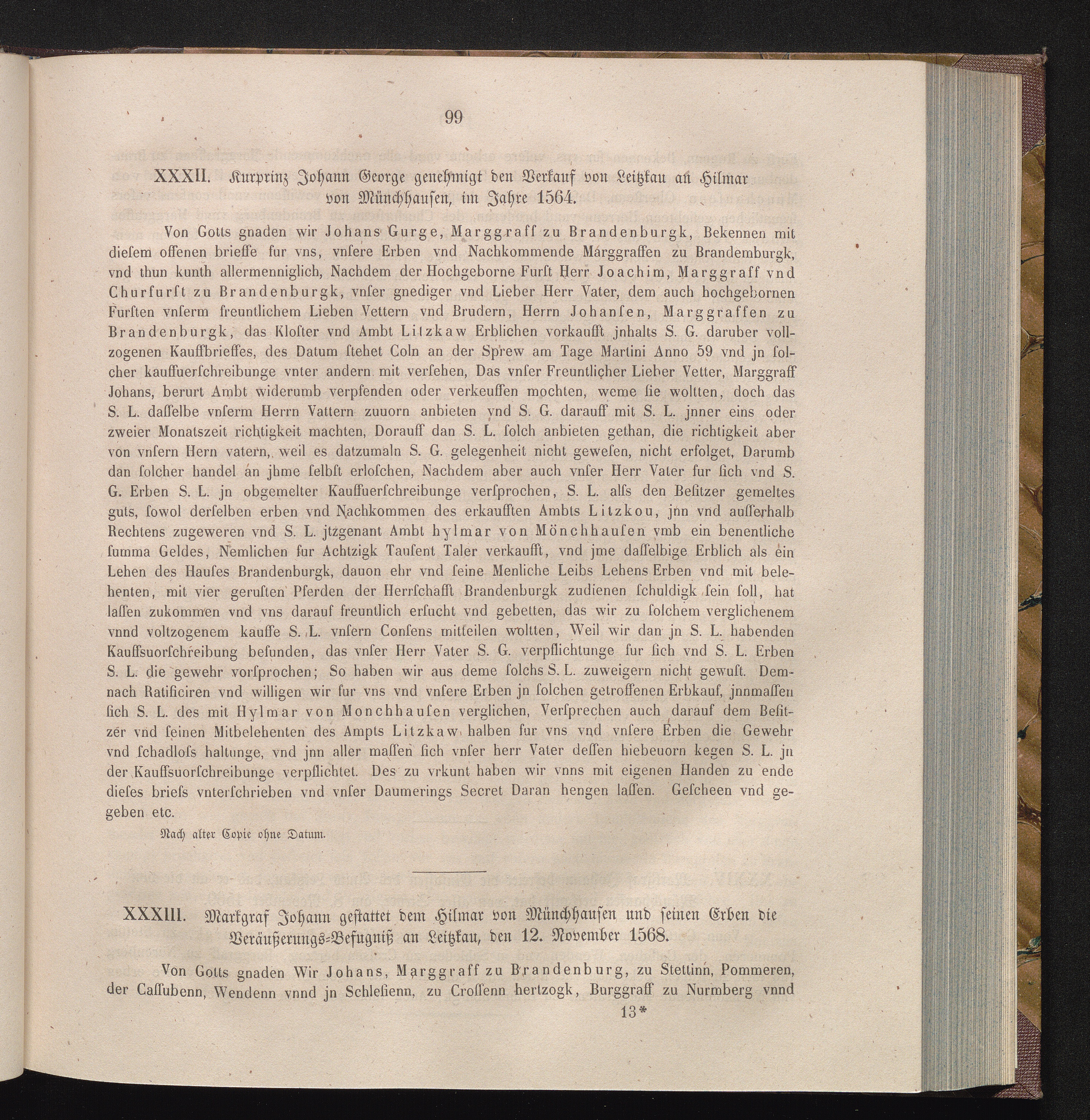 XXXIII. Markgraf Johann gestattet dem Hilmar von Münchhausen und seinen Erben die[...]