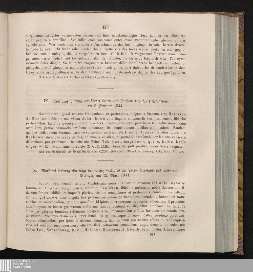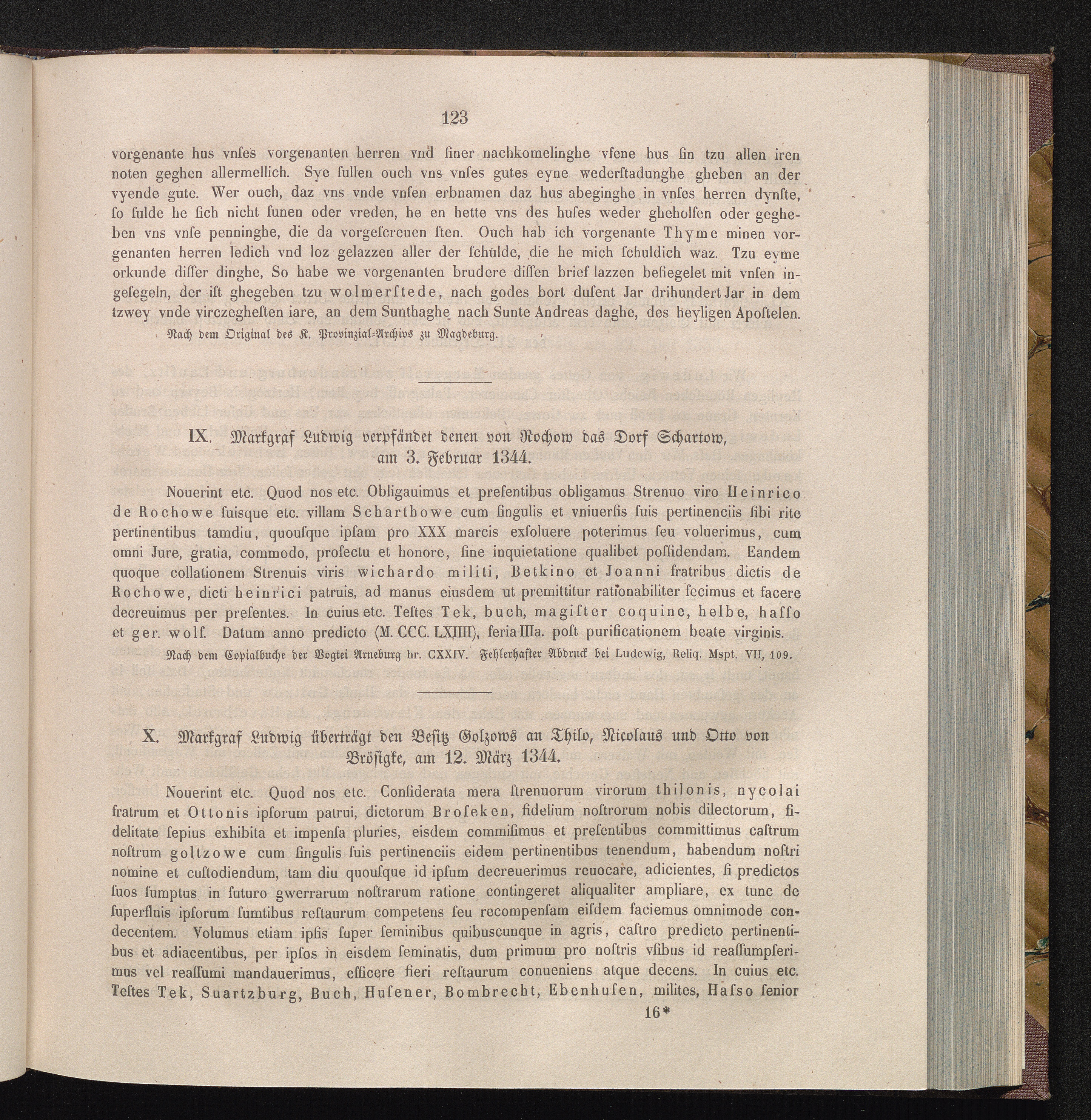 X. Markgraf Ludwig überträgt den Besitz Golzow an Thilo, Nicolaus und Otto von Brösigke,[...]