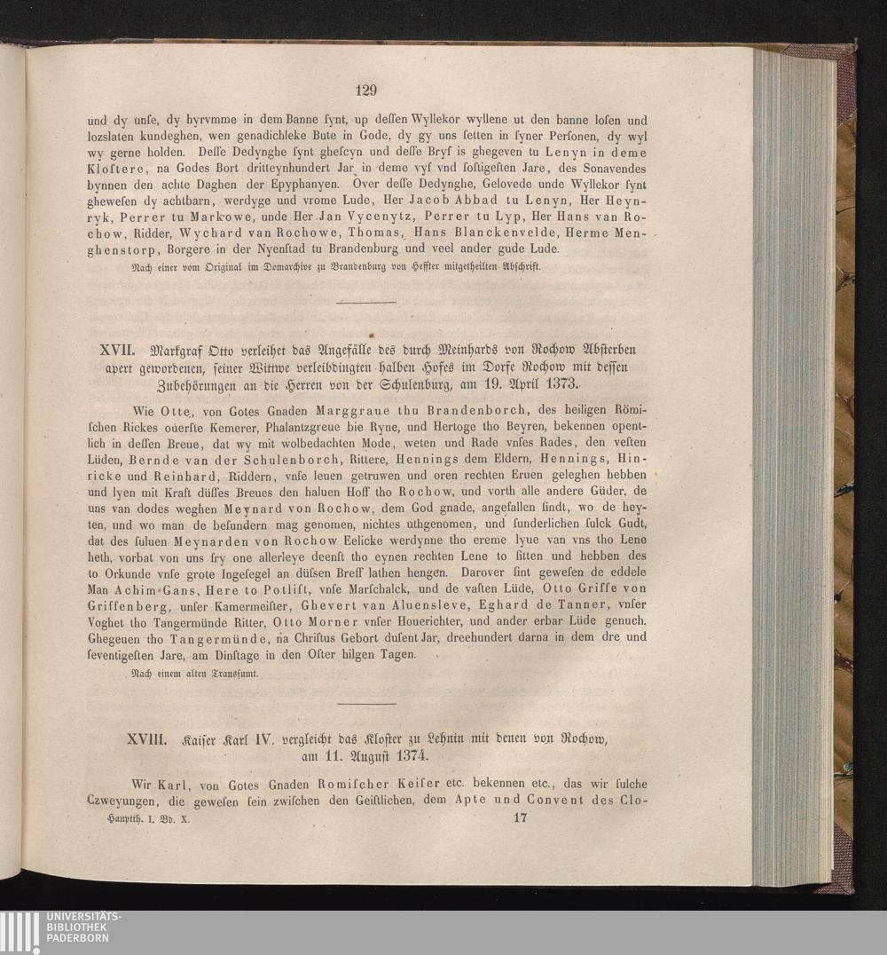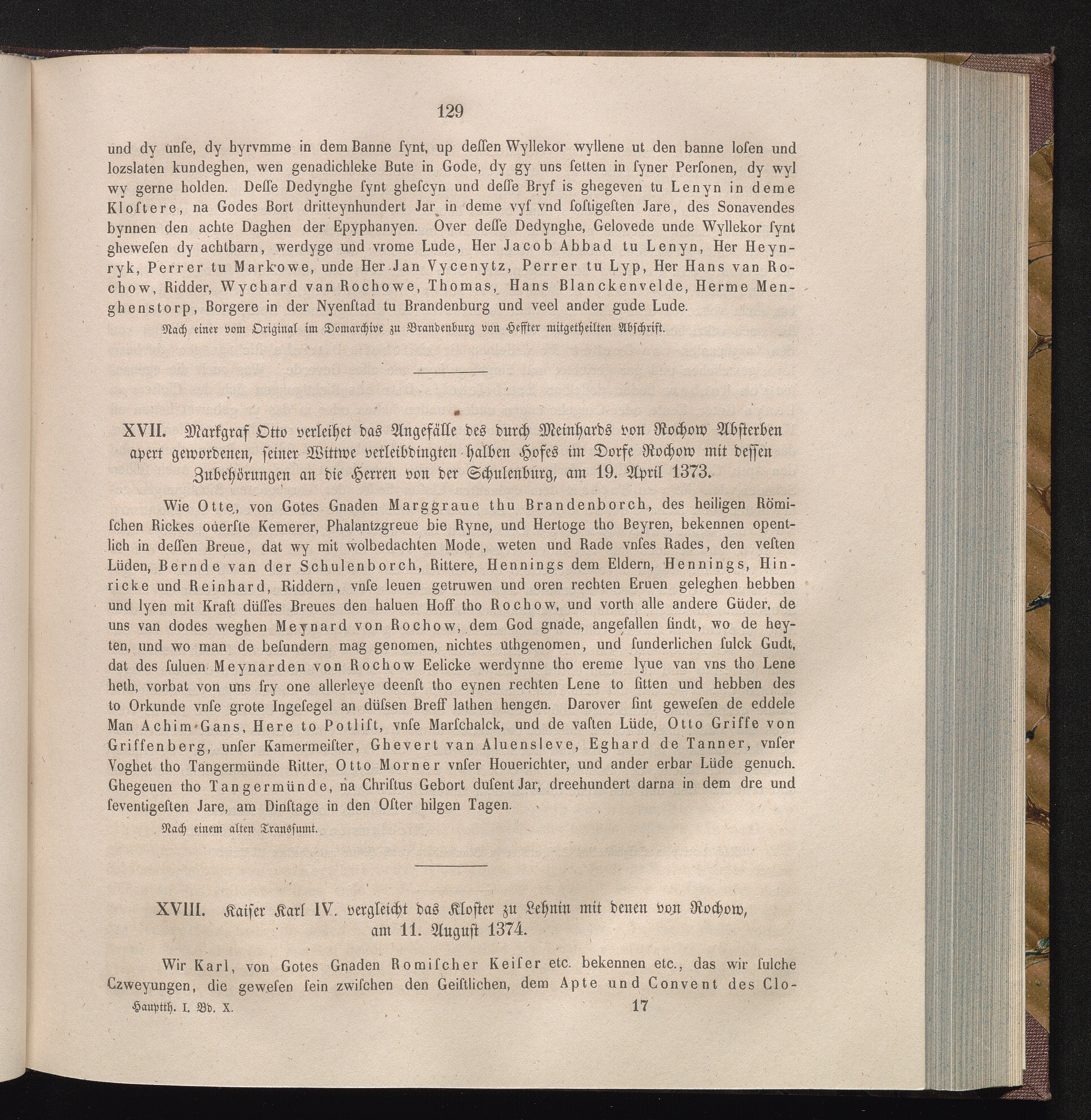 XVIII. Kaiser Karl IV. vergleicht das Kloster zu Lehnin mit denen von Rochow, am[...]