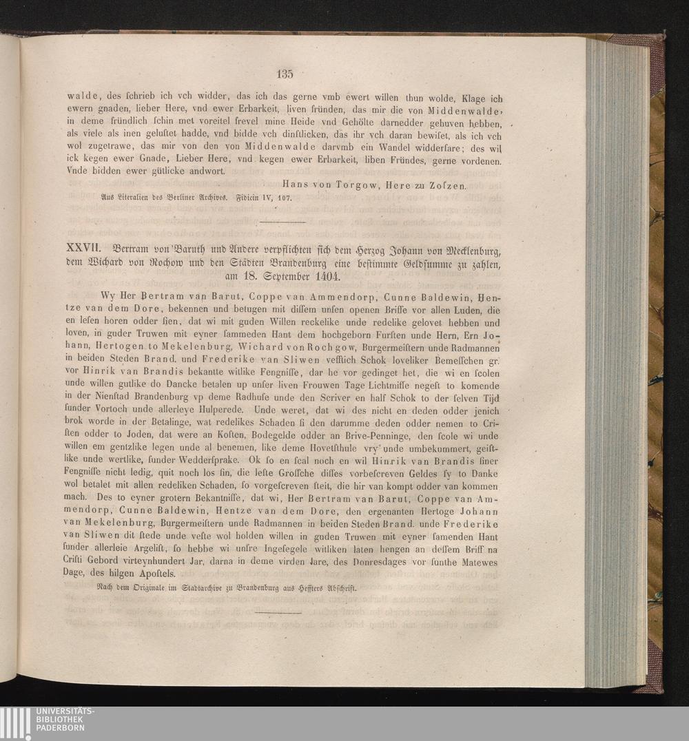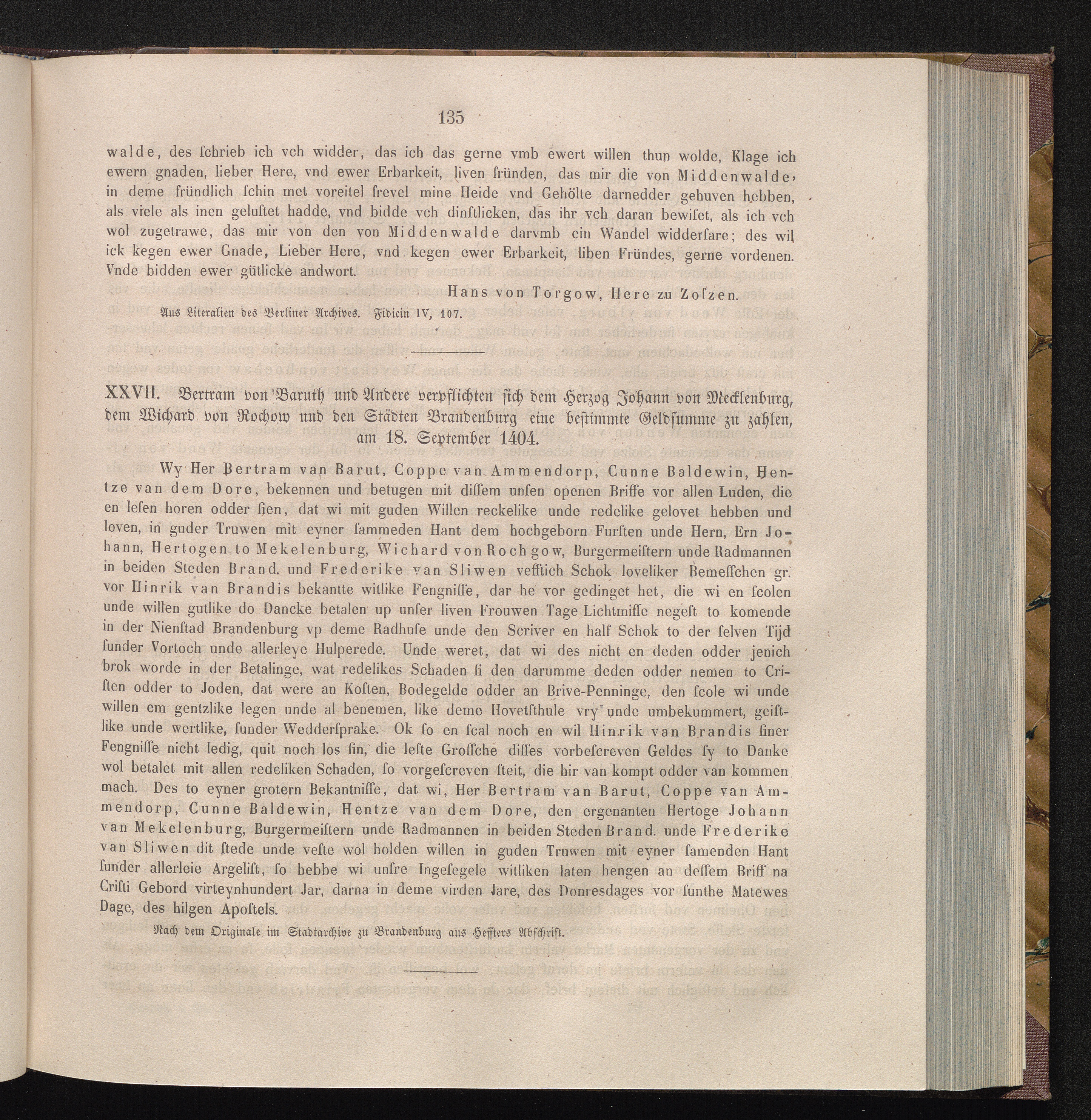 XXVII. Bertram von Baruth und Andere verpflichten sich dem Herzog Johann von Mecklenburg,[...]