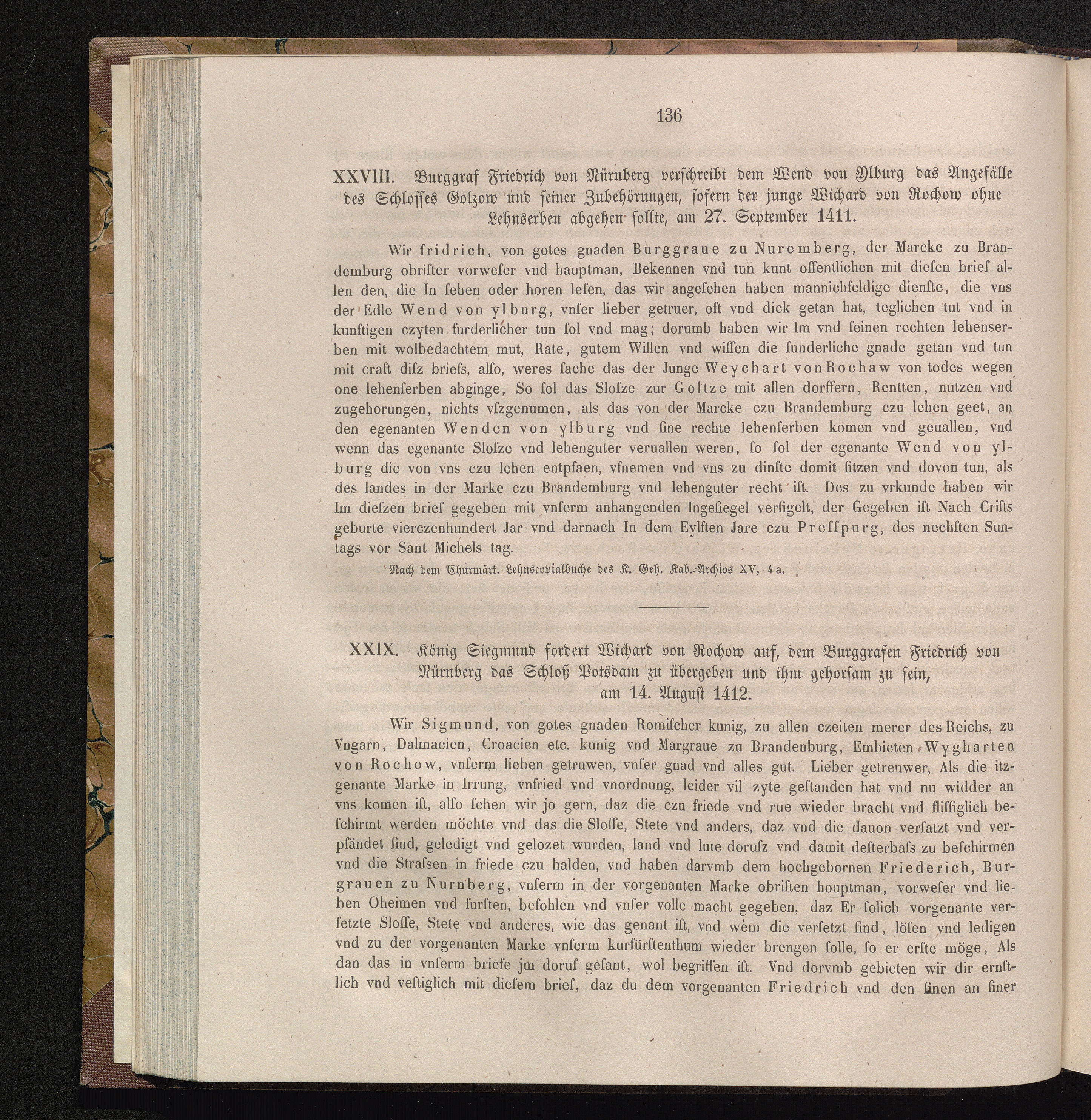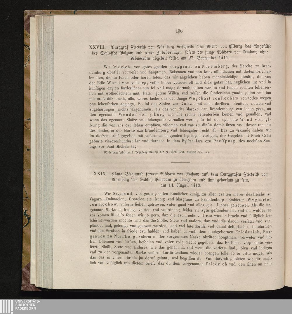 XXIX. König Siegmund fordert Wichard von Rochow auf, dem Burggrafen Friedrich von[...]