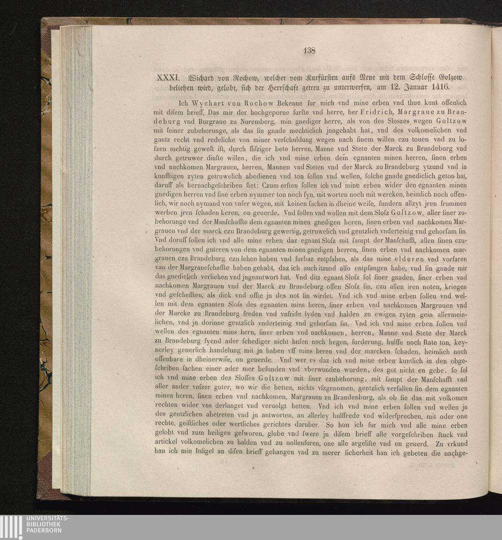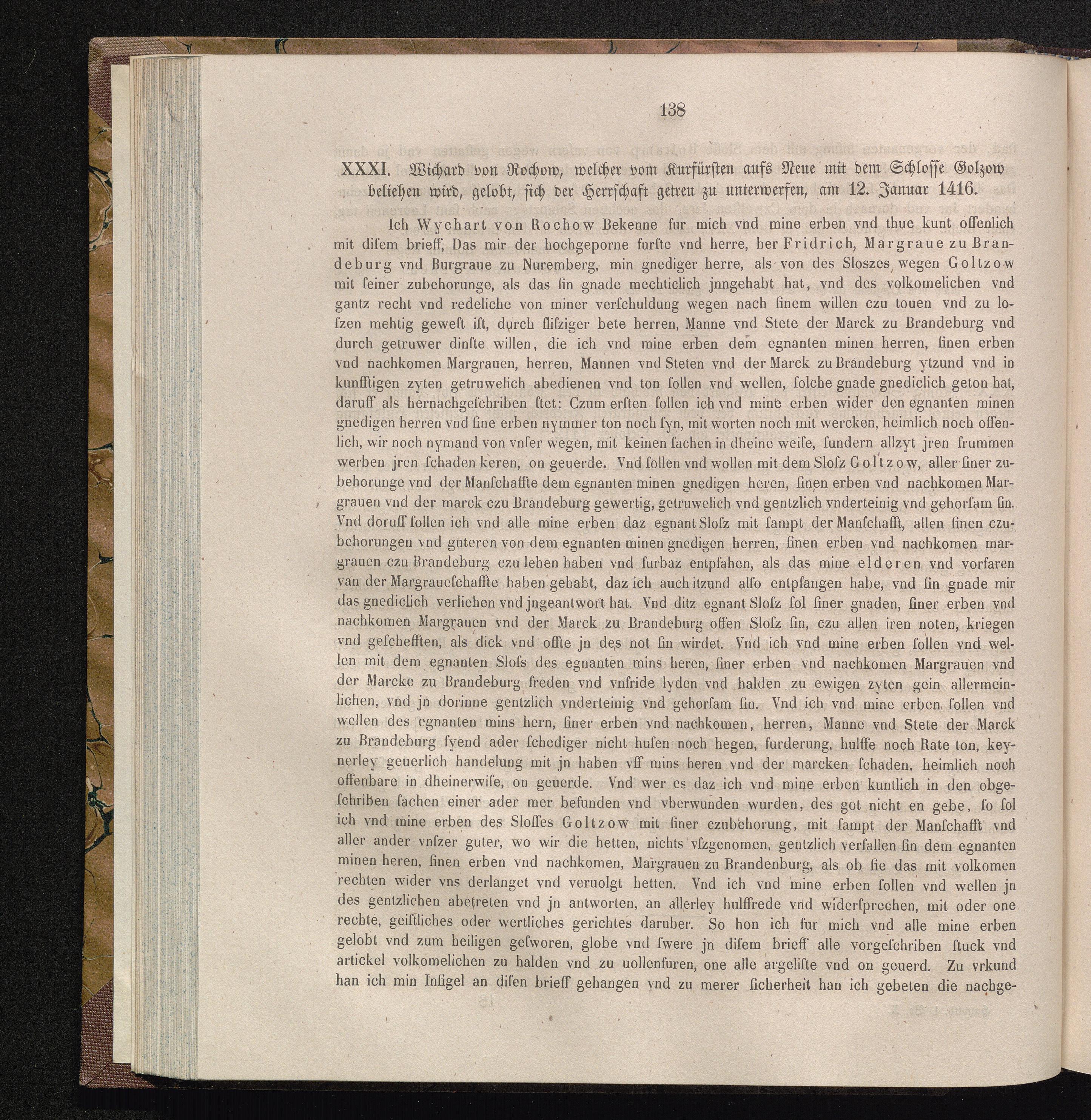 XXXI. Wichard von Rochow, welcher vom Kurfürsten aufs Neue mit dem Schlosse Golzow[...]