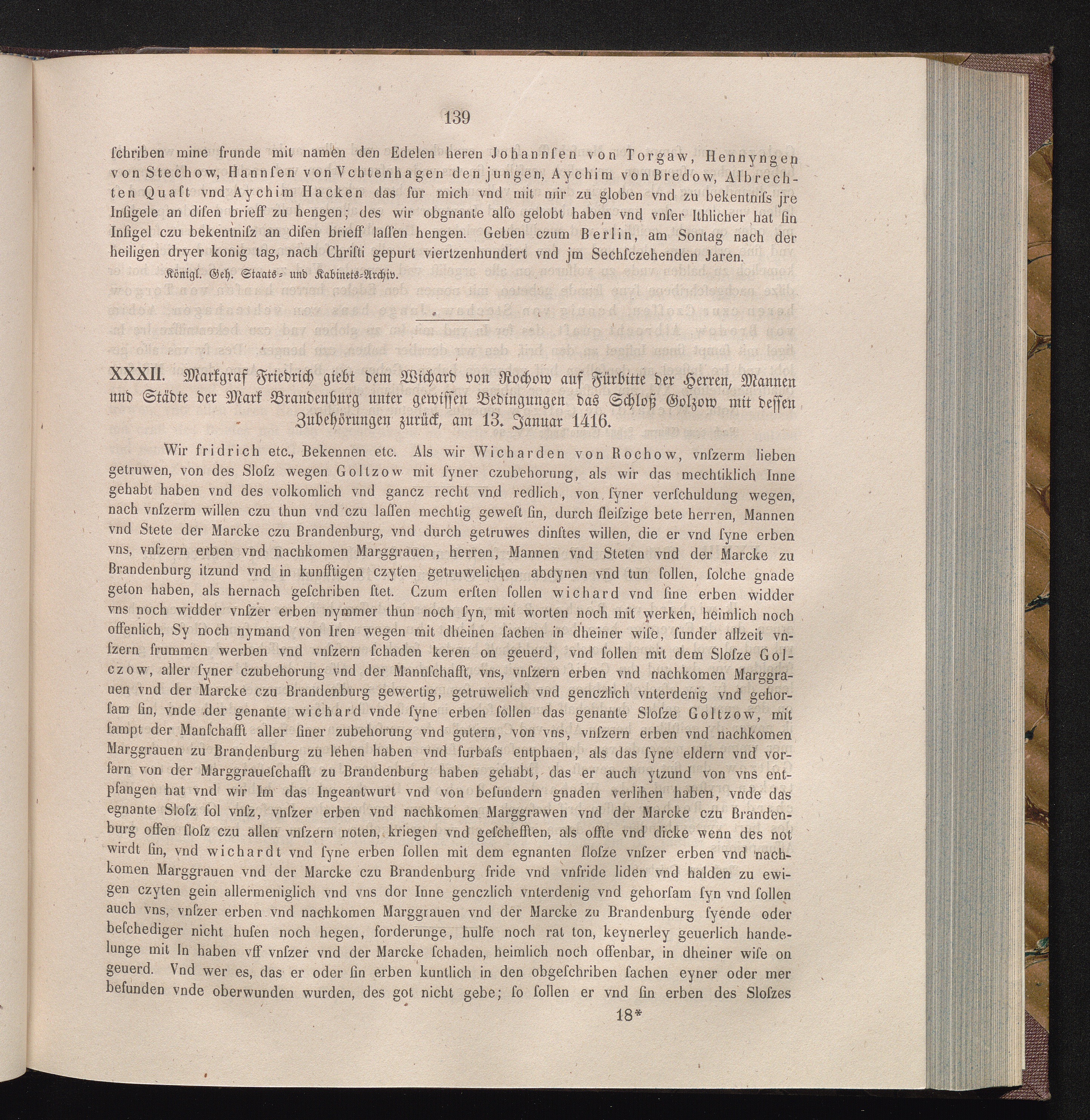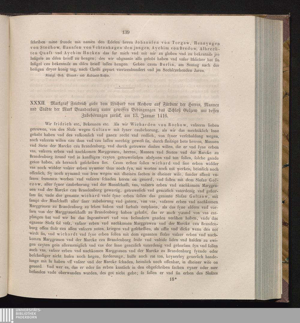 XXXII. Markgraf Friedrich giebt dem Wichard von Rochow auf Fürbitte der Herren, Mannen[...]