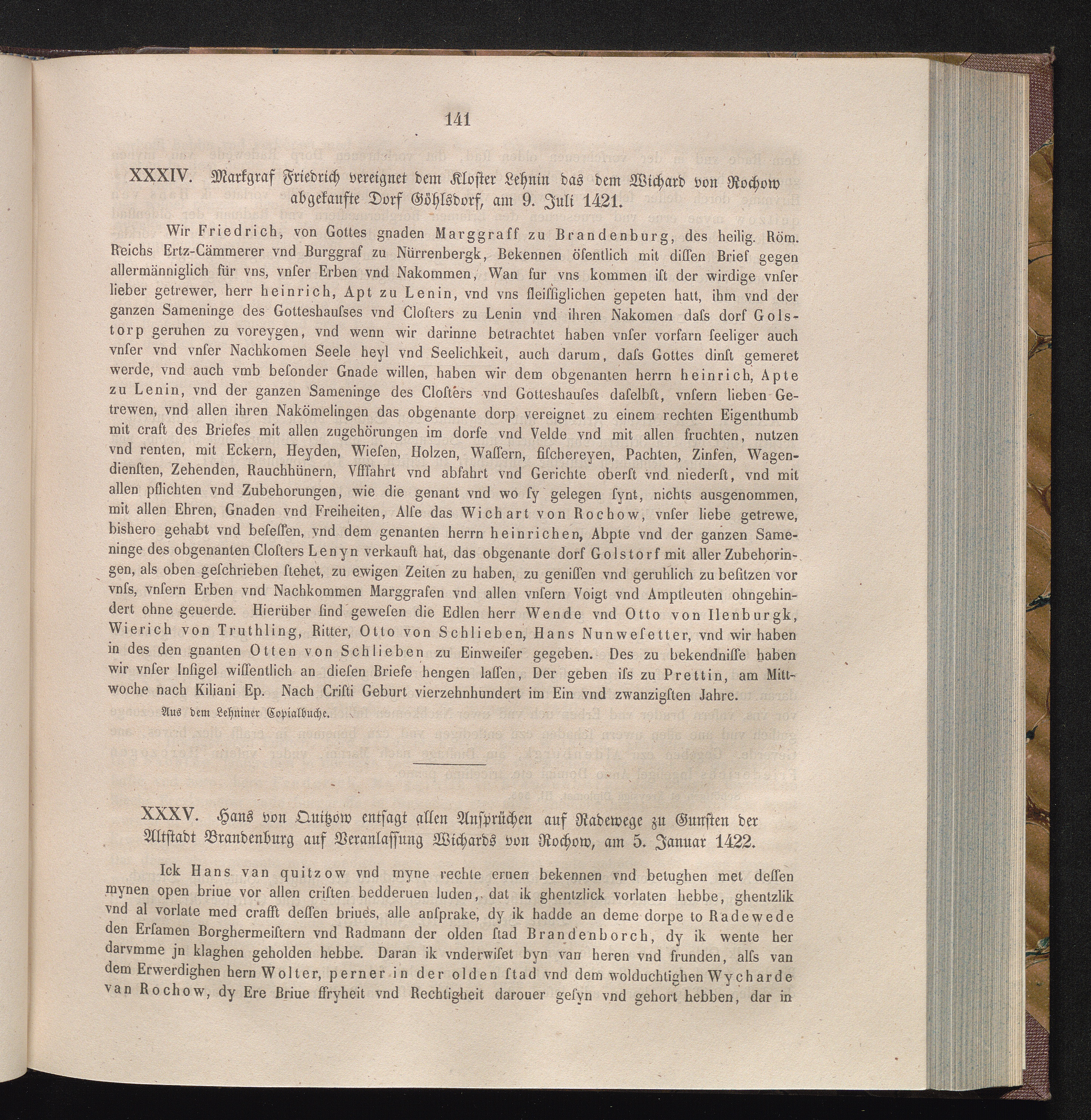 XXXV. Hans von Quitzow entsagt allen Ansprüchen auf Radewege zu Gunsten der Altstadt[...]