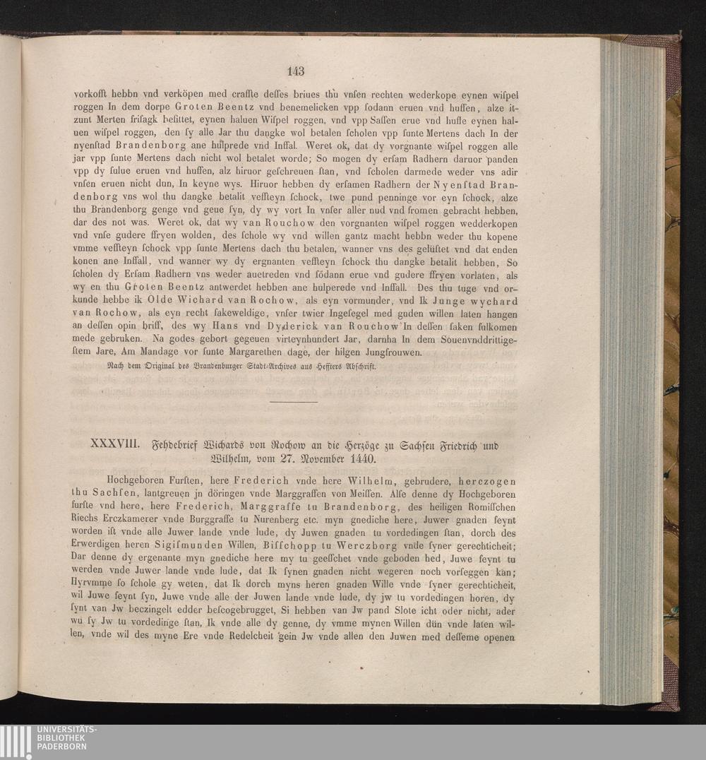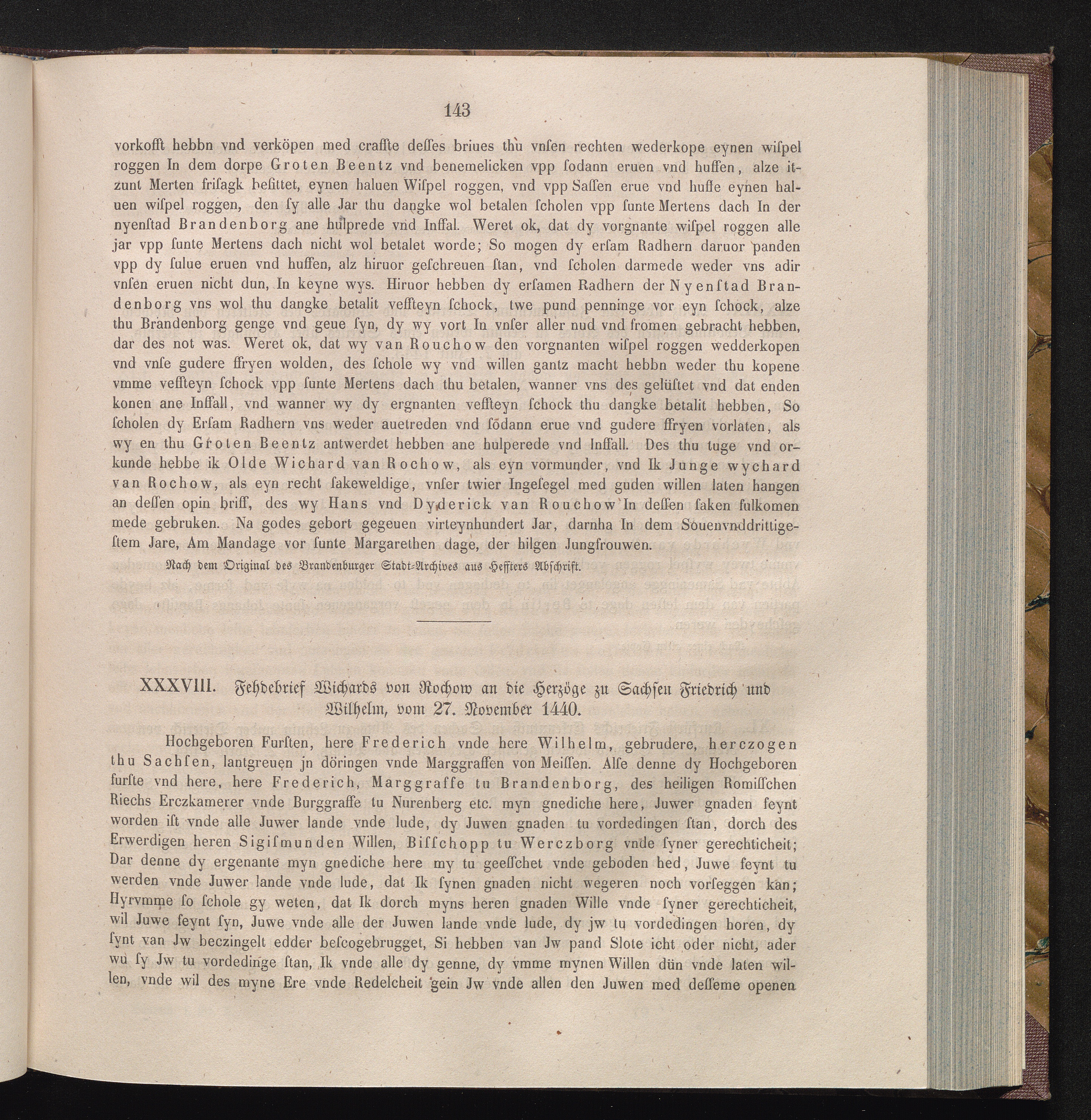 XXXVIII. Fehdebrief Wichards von Rochow an die Herzöge zu Sachsen Friedrich und Wilhelm,[...]