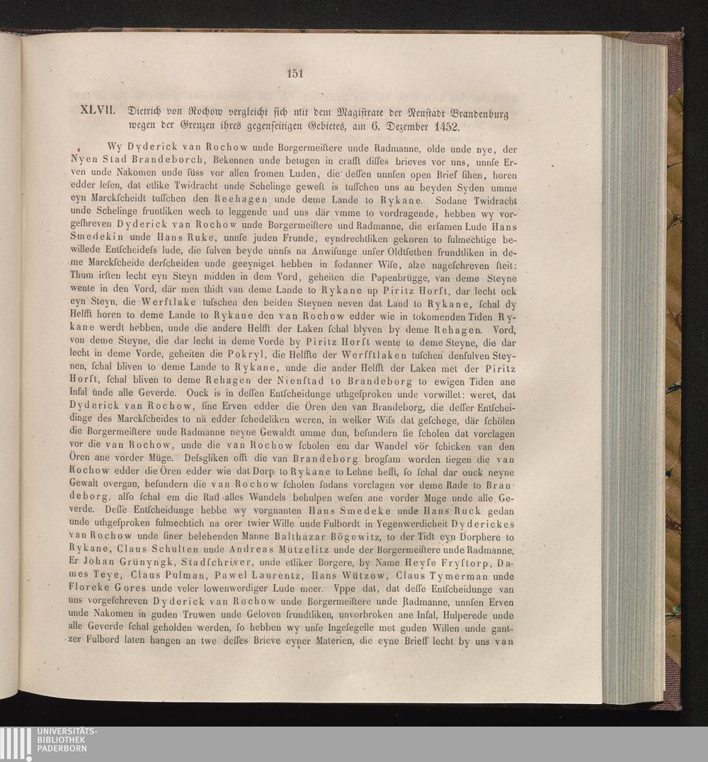 XLVII. Dietrich von Rochow vergleicht sich mit dem Magistrate der Neustadt Brandenburg[...]