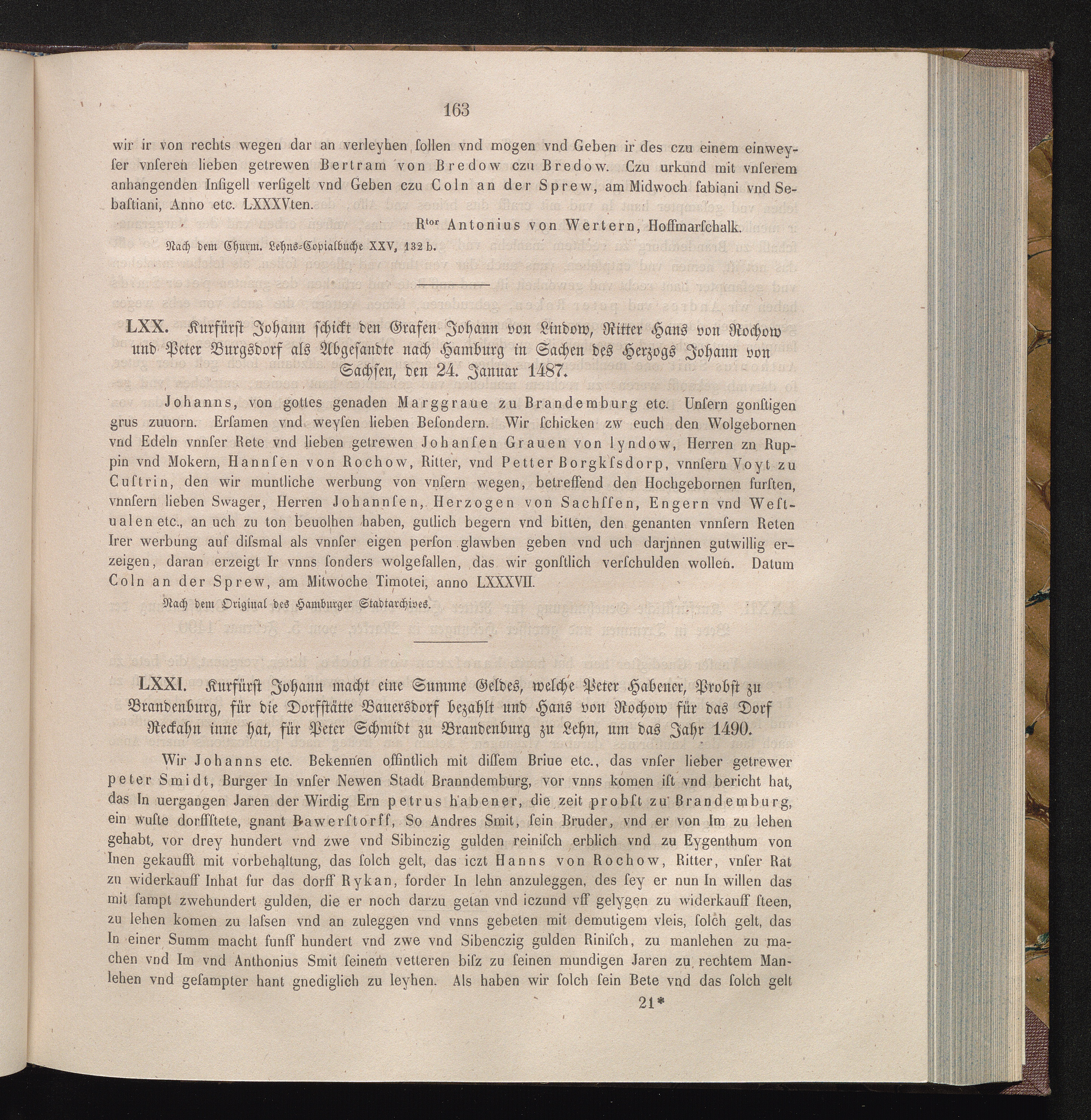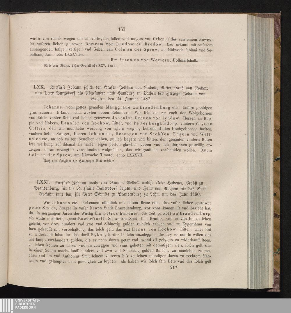 LXXI. Kurfürst Johann macht eine Summe Geldes, welche Peter Habener, Probst zu Brandenburg,[...]