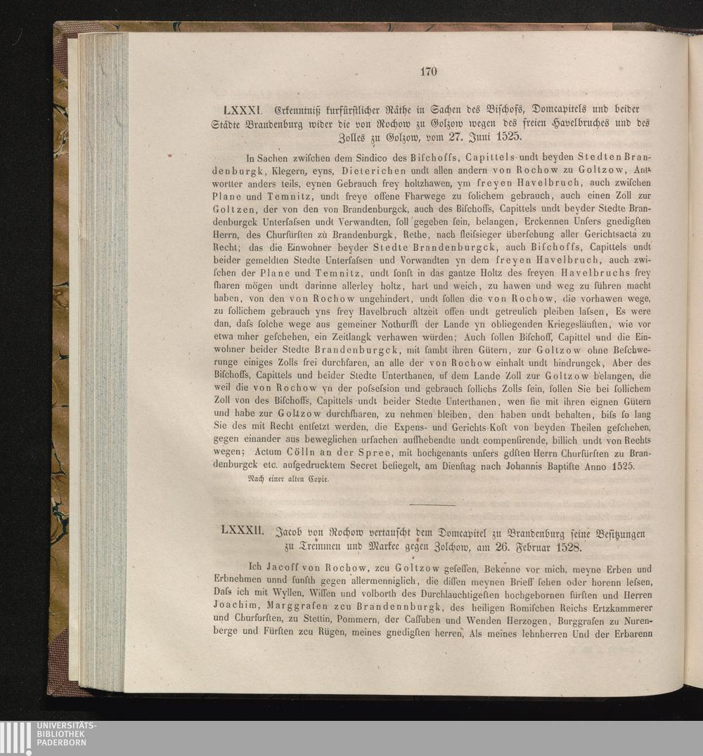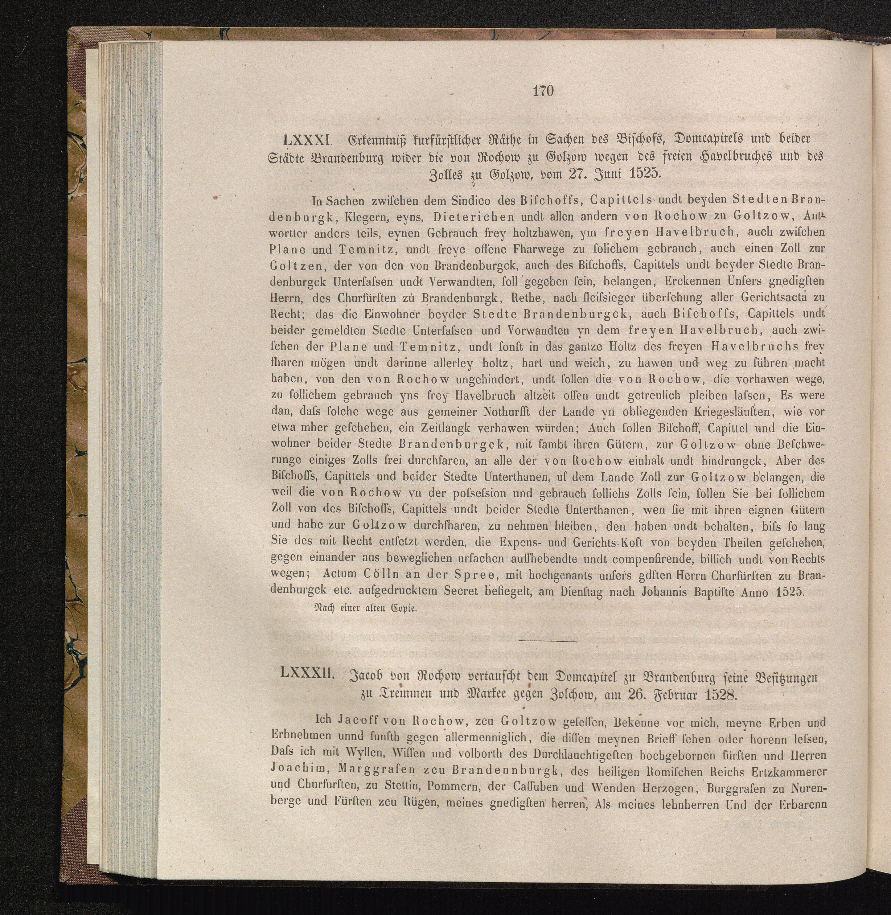 LXXXII. Jacob von Rochow vertauscht dem Domcapitel zu Brandenburg seine Besitzungen[...]