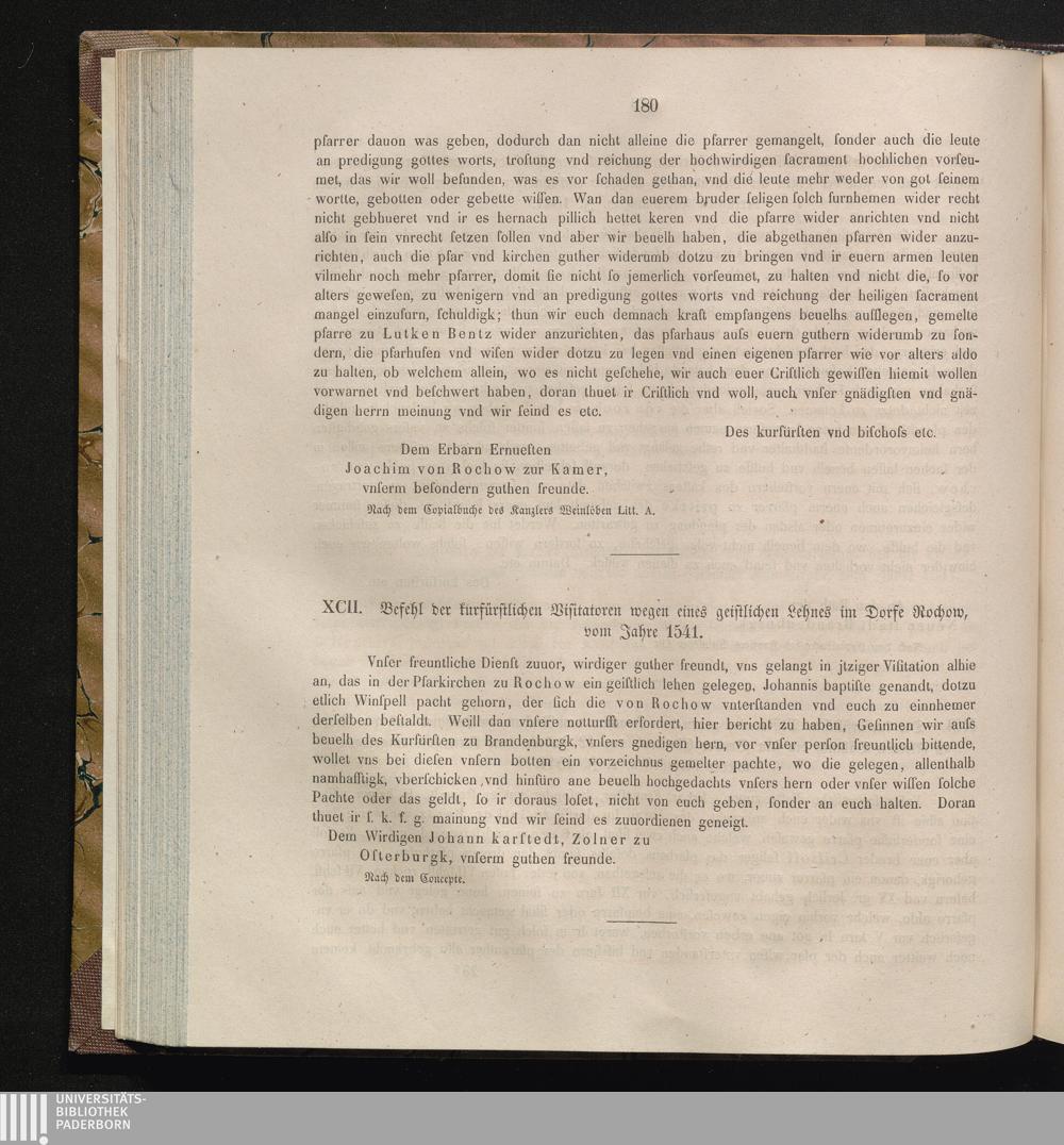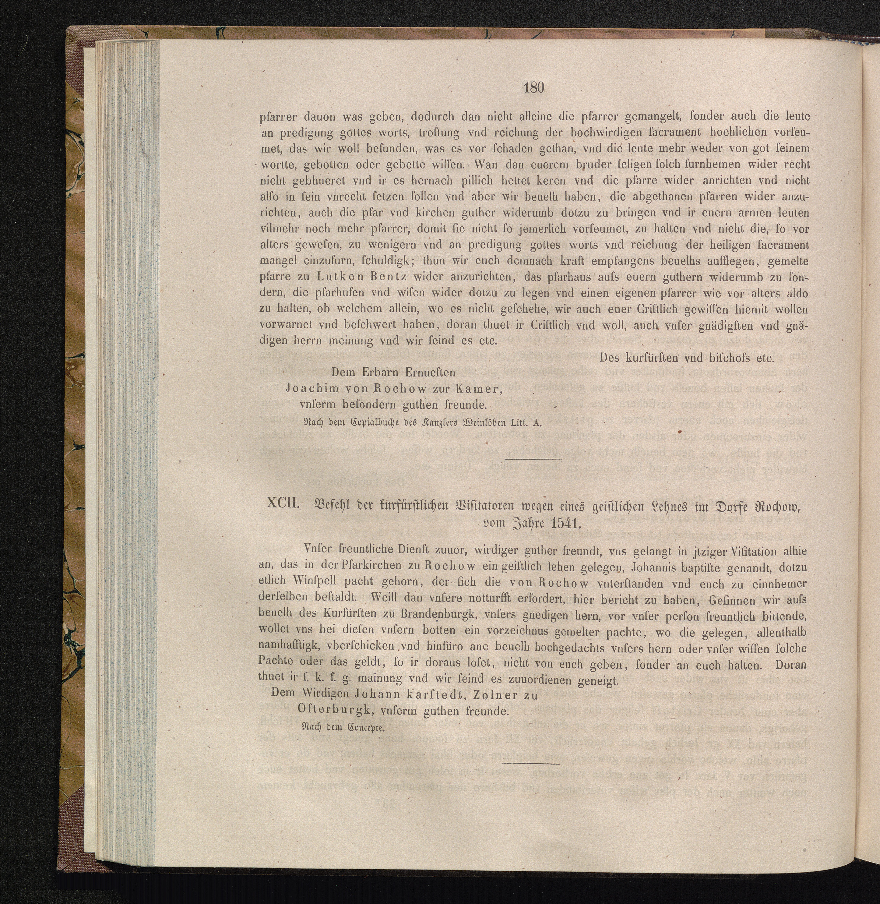 XCII. Befehl der kurfürstlichen Visitatoren wegen eines geistlichen Lehnes im Dorfe[...]