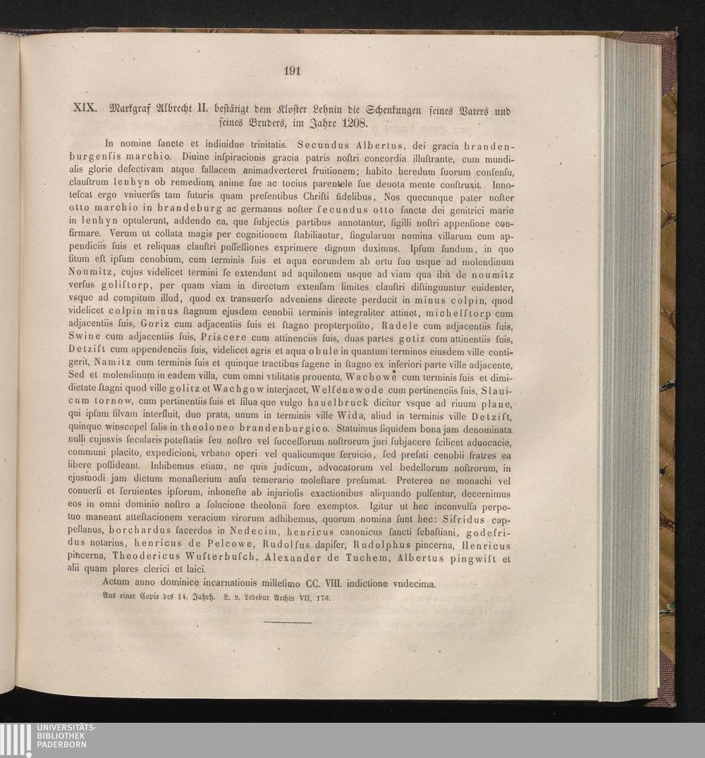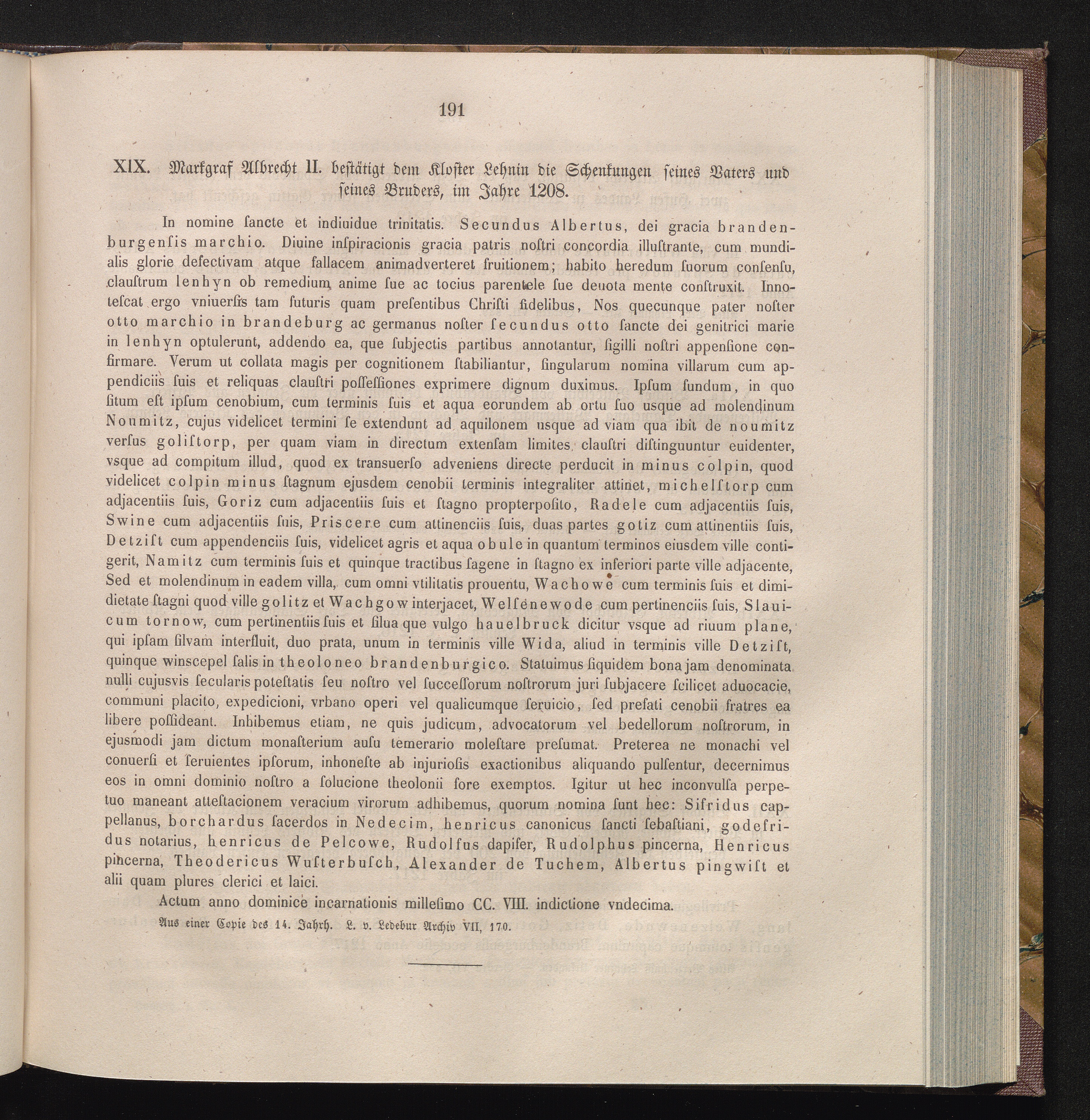 XIX. Markgraf Albrecht II. bestätigt dem Kloster Lehnin die Schenkungen seines Vaters[...]