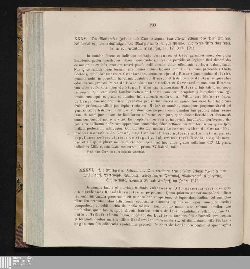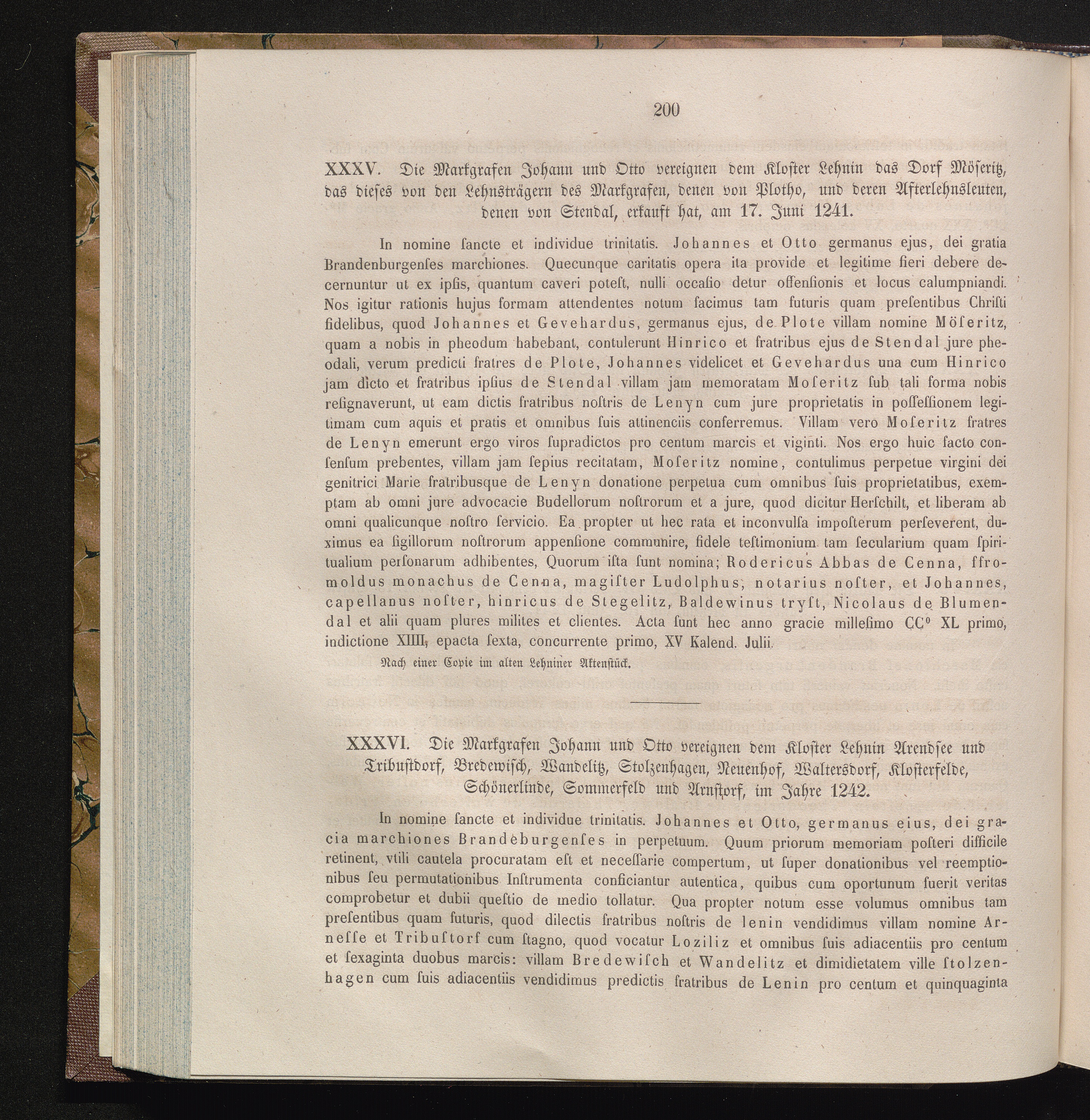 XXXVI. Die Markgrafen Johann und Otto vereignen dem Kloster Lehnin Arendsee und Tribustdorf,[...]