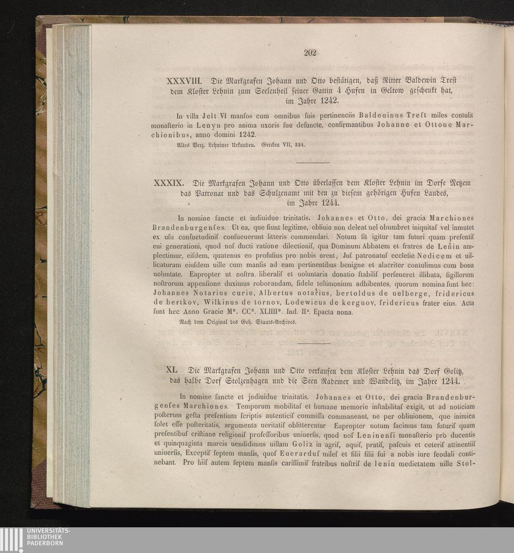 XL. Die Markgrafen Johann und Otto verkaufen dem Kloster Lehnin das Dorf Golitz,[...]
