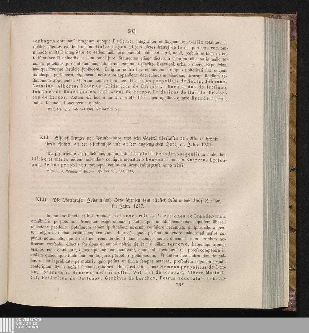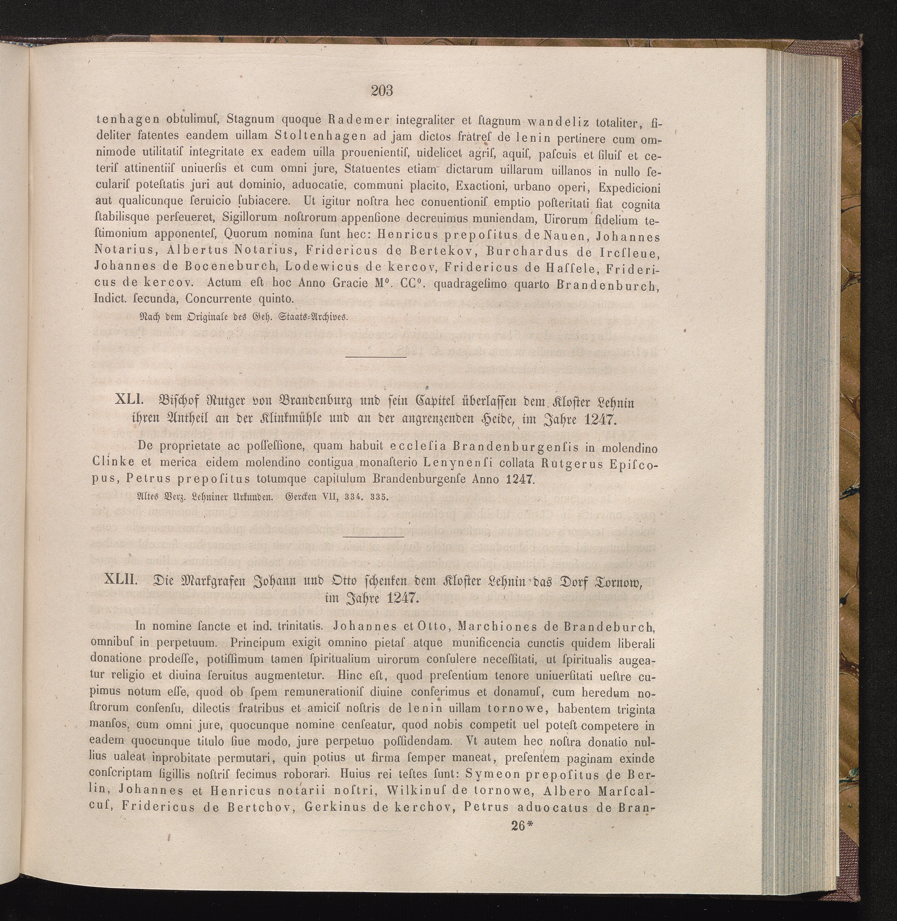 XLII. Die Markgrafen Johann und Otto schenken dem Kloster Lehnin das Dorf Tornow,[...]