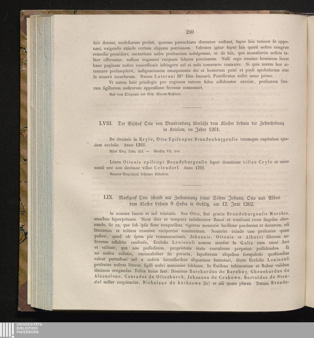 LIX. Markgraf Otto schenkt mit Zustimmung seiner Söhne Johann, Otto und Albert dem[...]