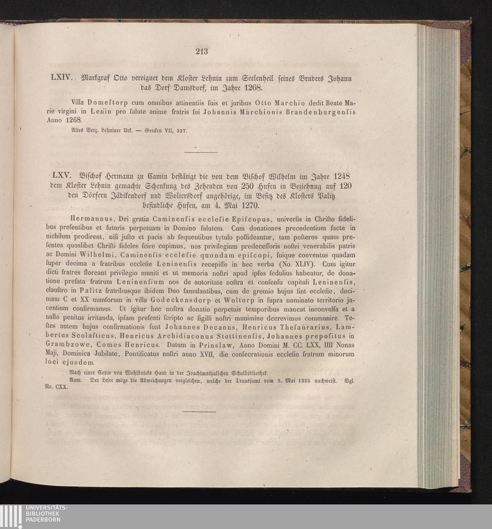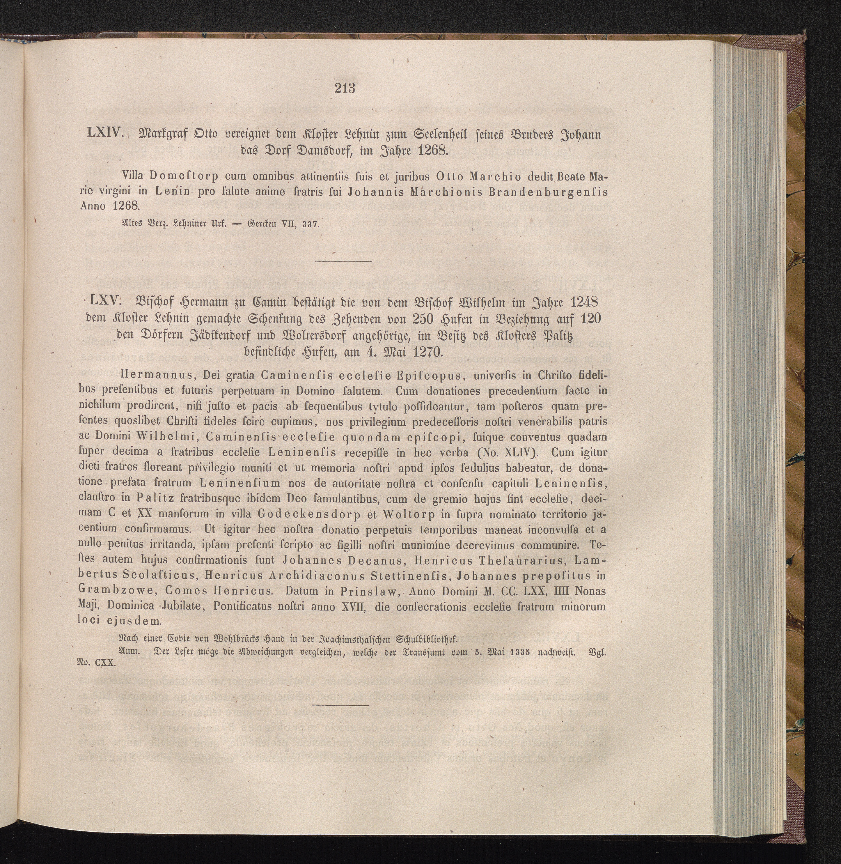 LXV. Bischof Hermann zu Camin bestätigt die von dem Bischof Wilhelm im Jahre 1248[...]