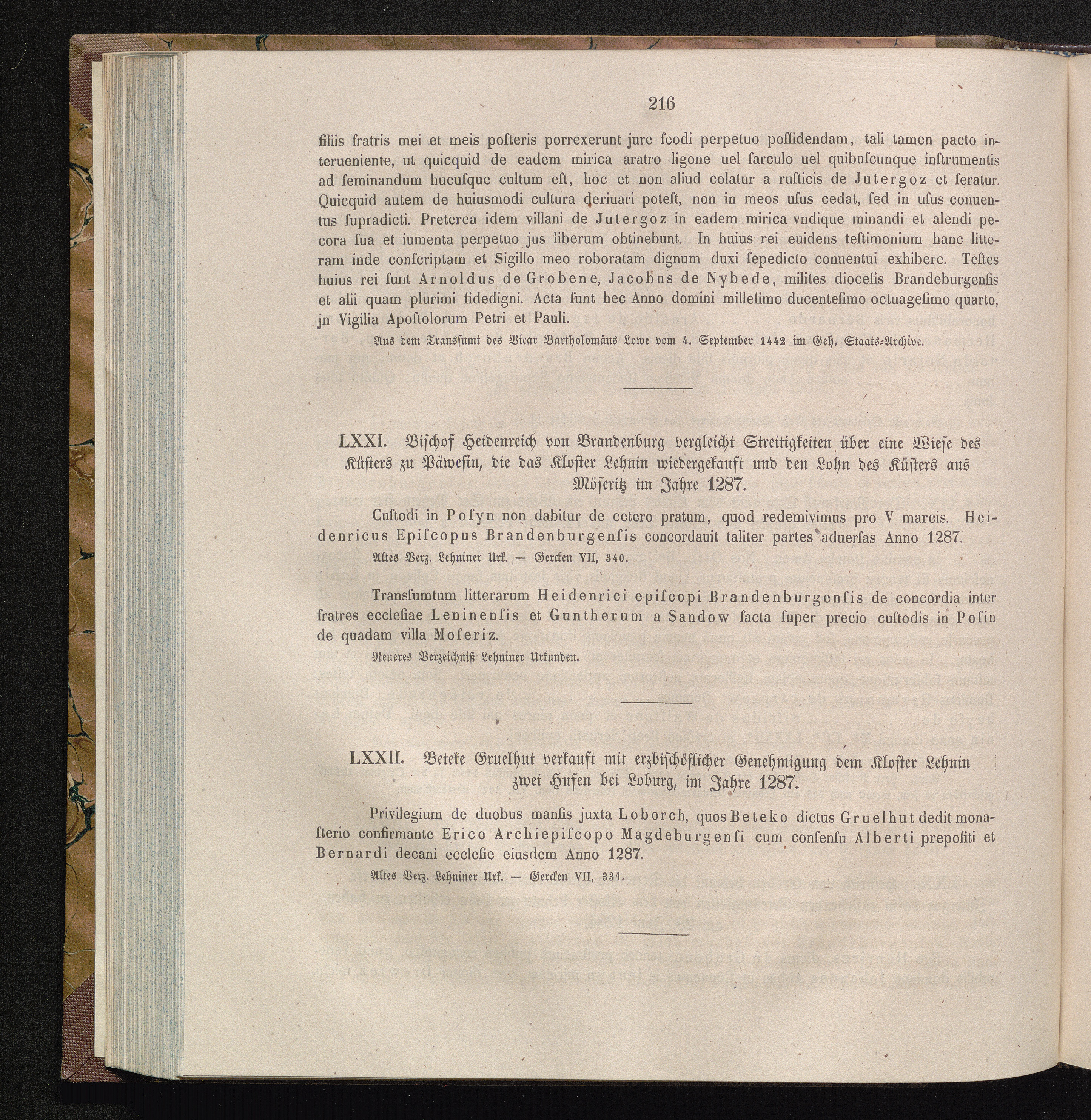 LXXII. Beteke Gruelhut verkauft mit erzbischöflicher Genehmigung dem Kloster Lehnin[...]