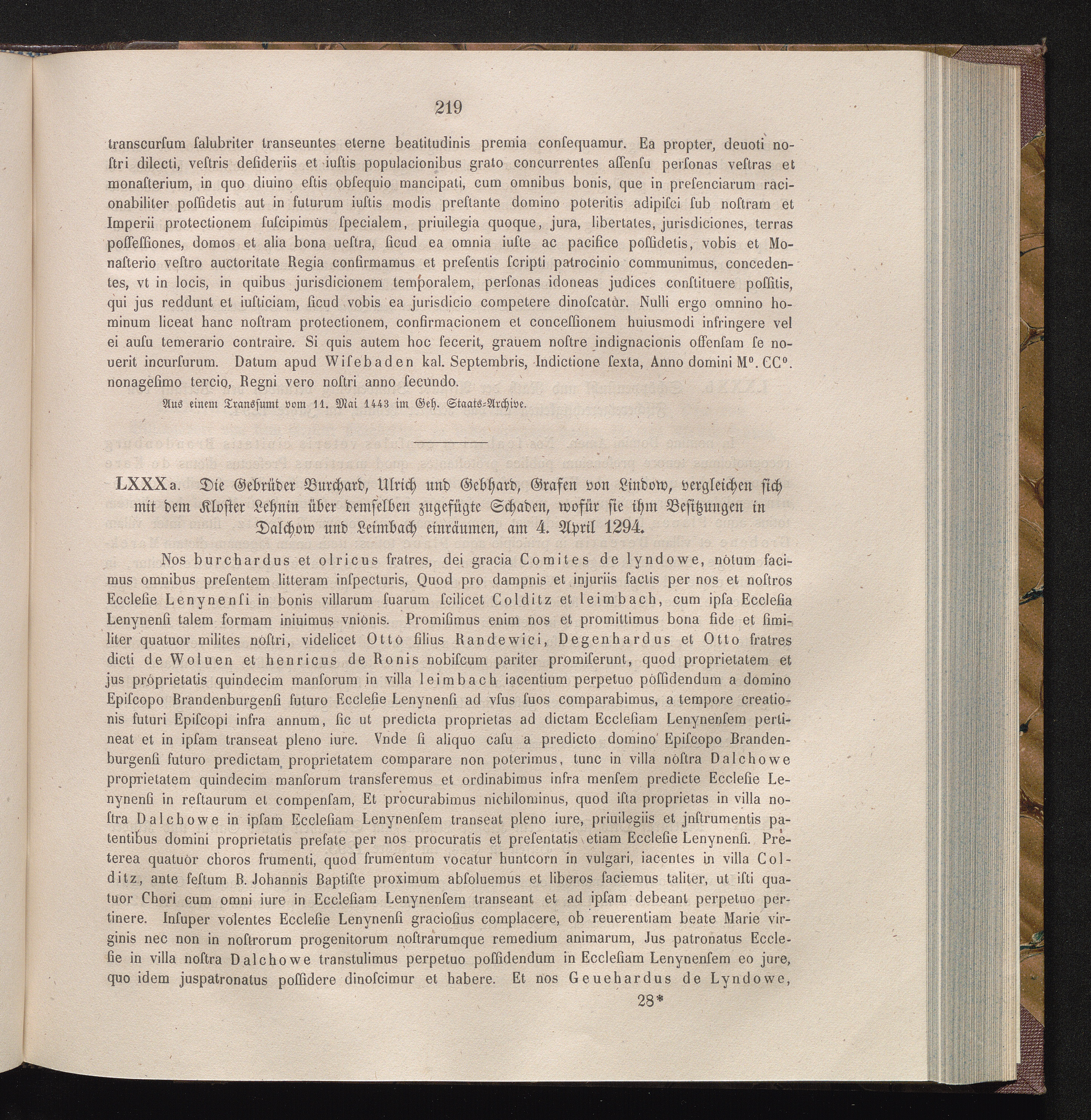 LXXXa. Die Gebrüder Burchard, Ulrich und Gebhard, Grafen von Lindow, vergleichen[...]