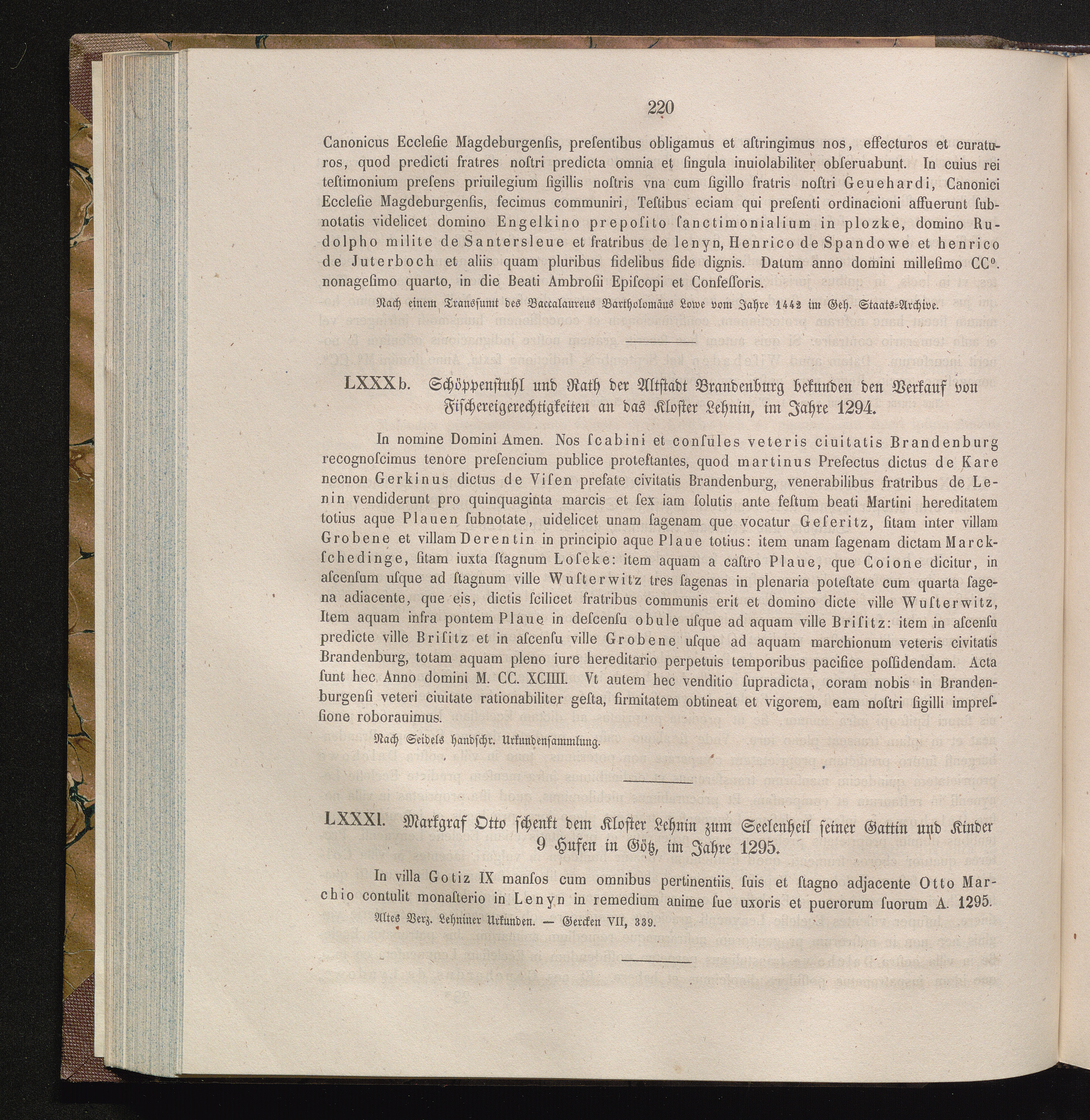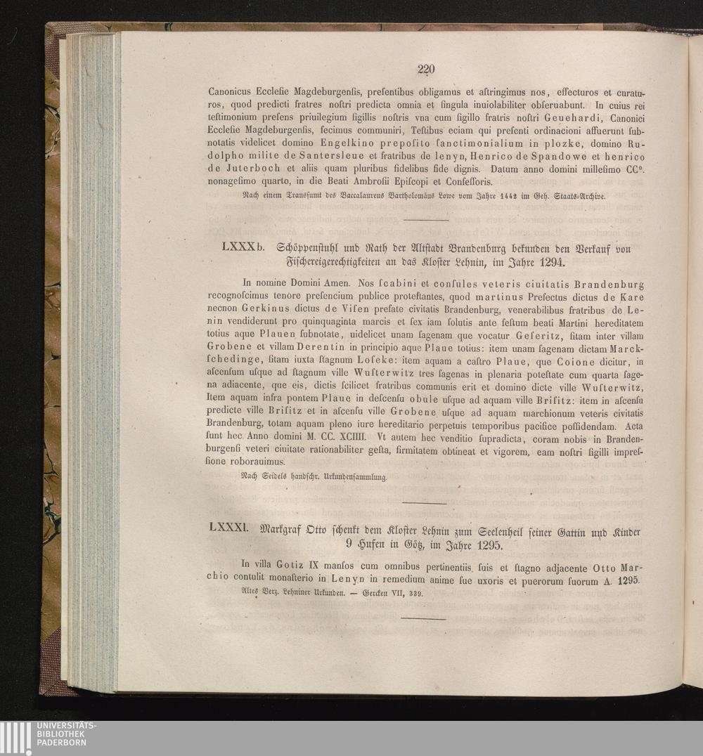 LXXXI. Markgraf Otto schenkt dem Kloster Lehnin zum Seelenheil seiner Gattin und[...]