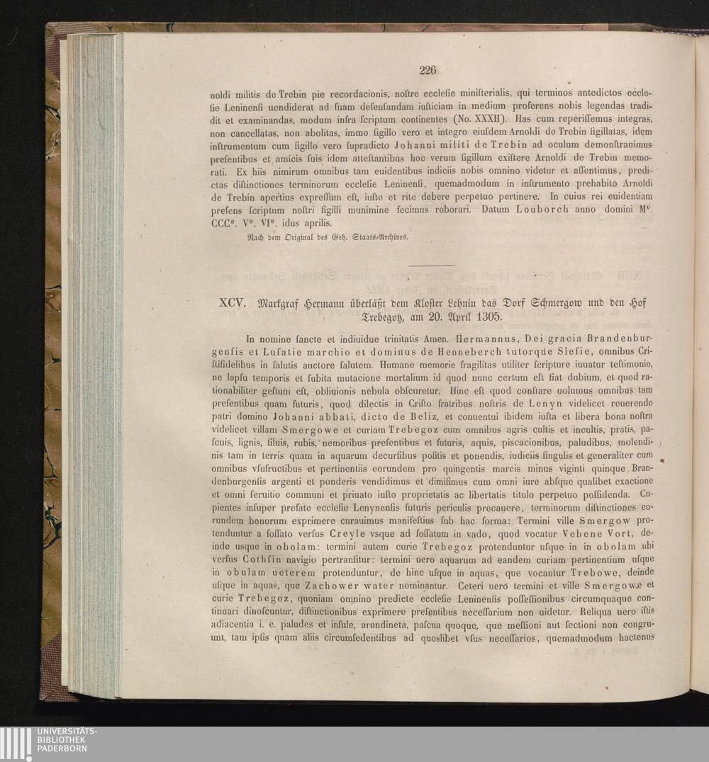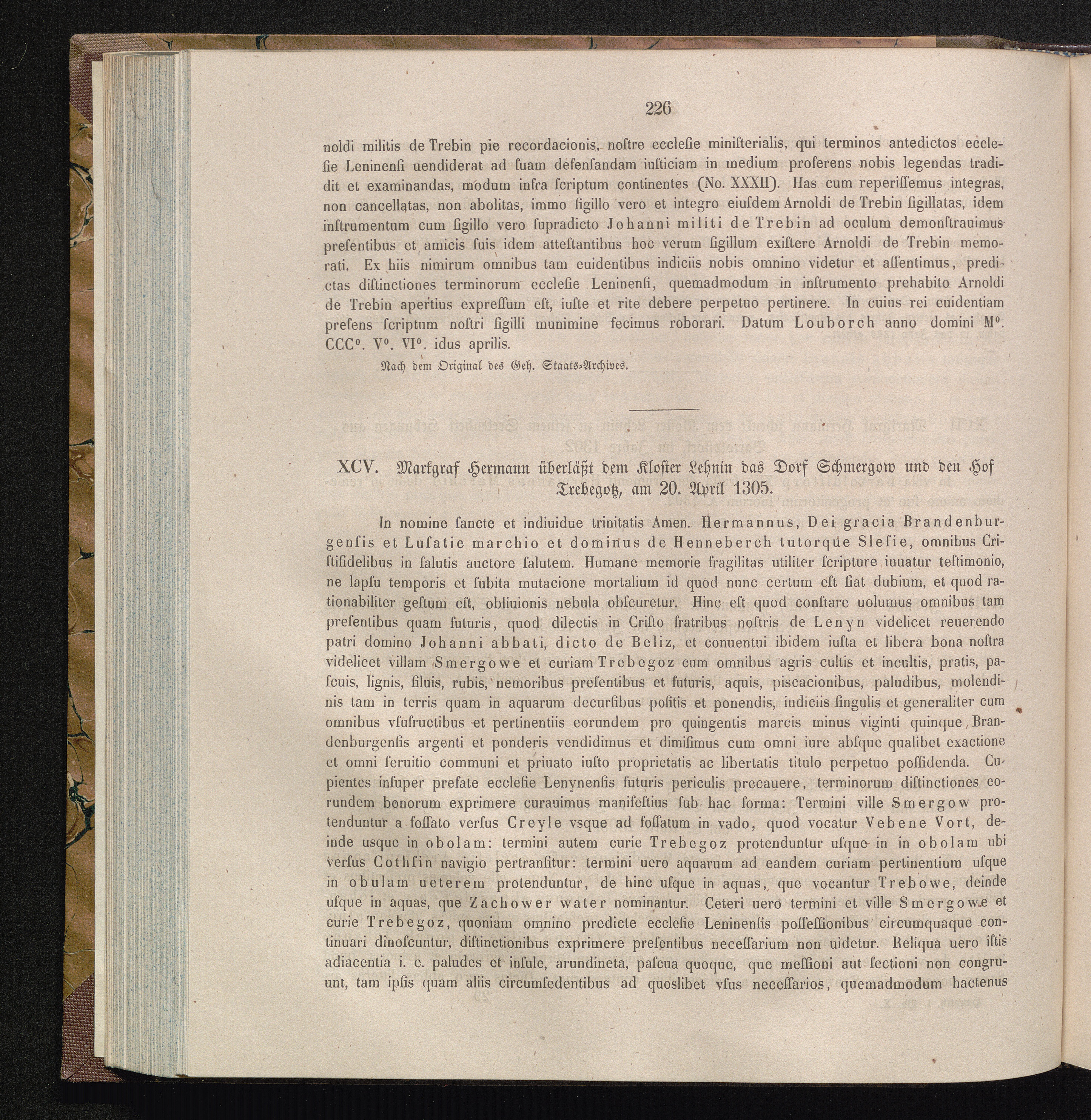 XCV. Markgraf Hermann überläßt dem Kloster Lehnin das Dorf Schmergow und den Hof[...]