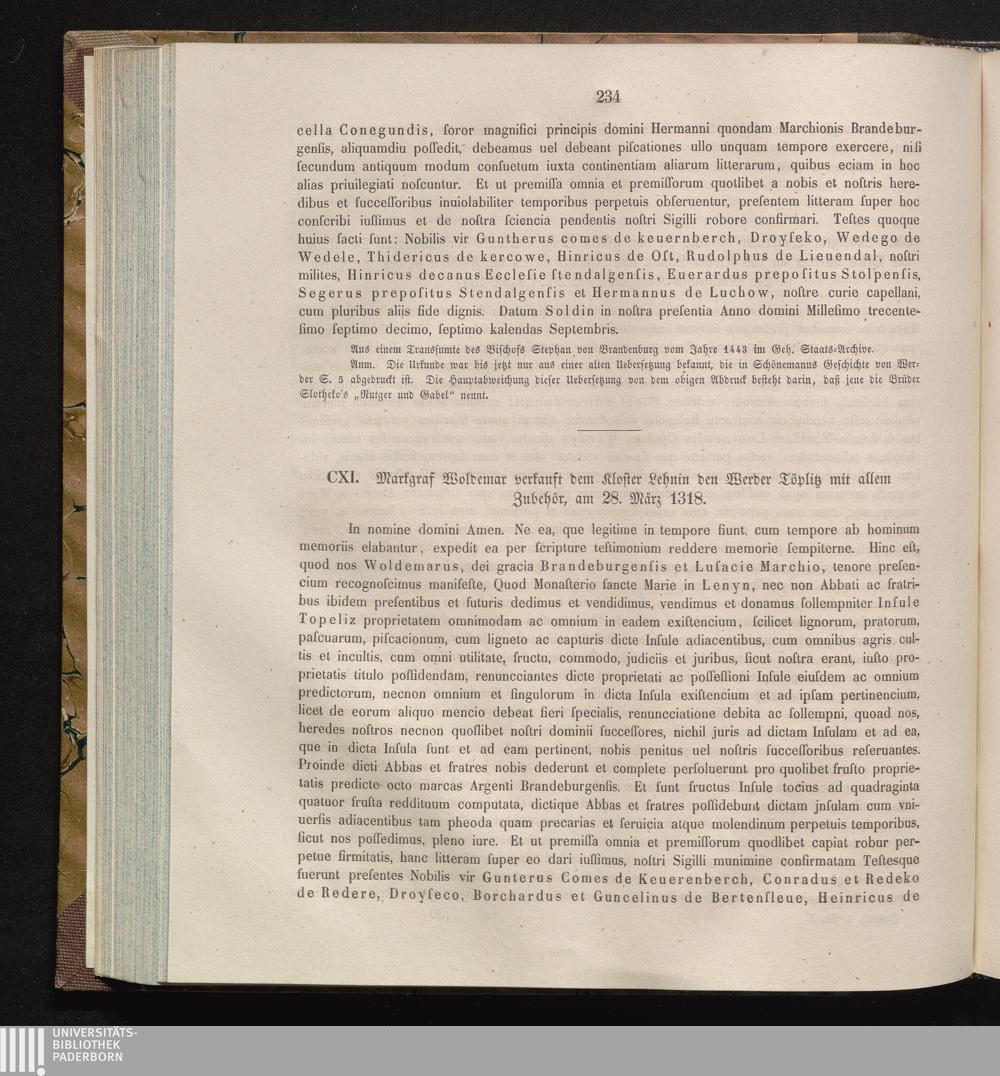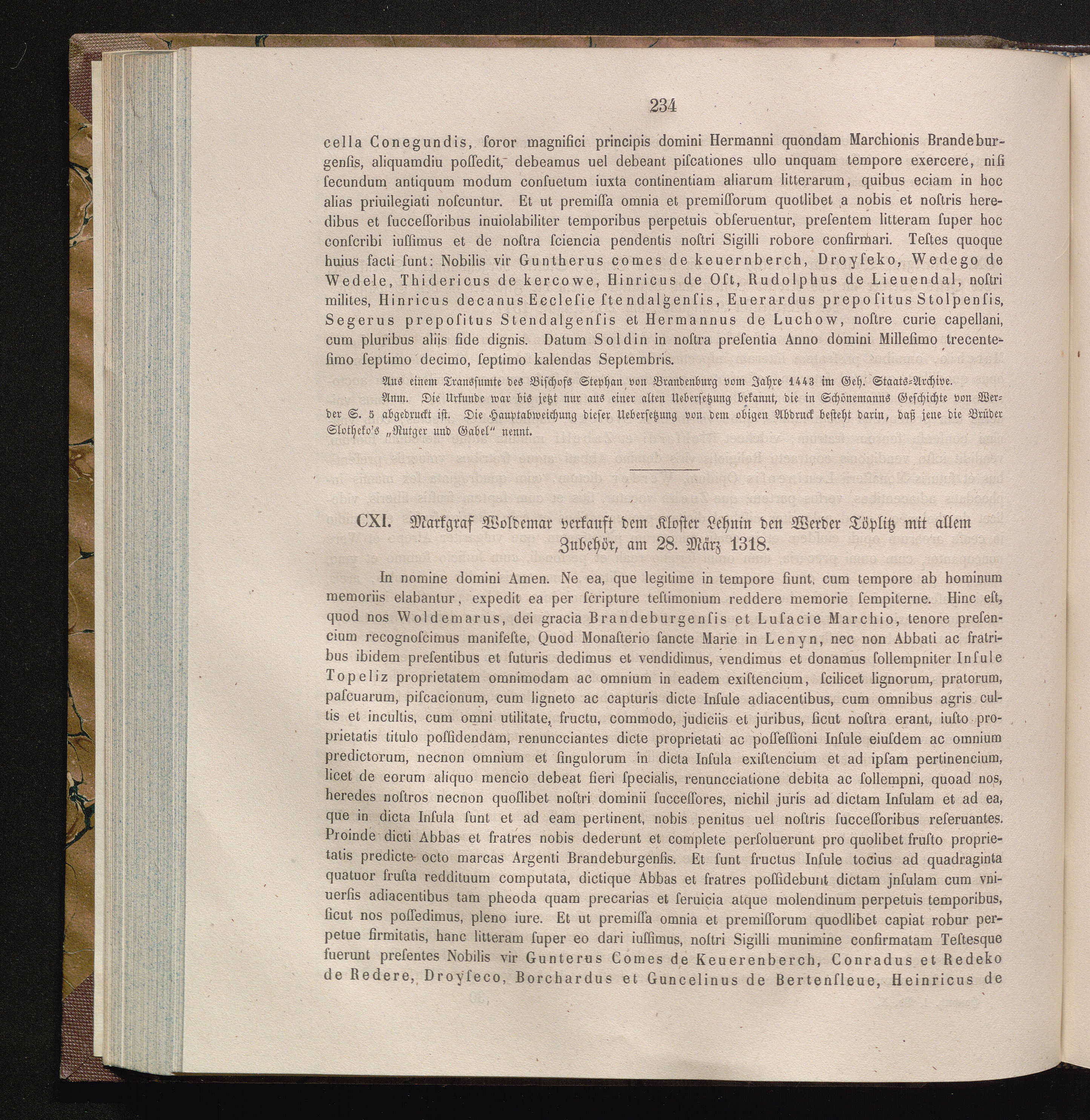 CXI. Markgraf Woldemar verkauft dem Kloster Lehnin den Werder Töplitz mit allem Zubehör,[...]